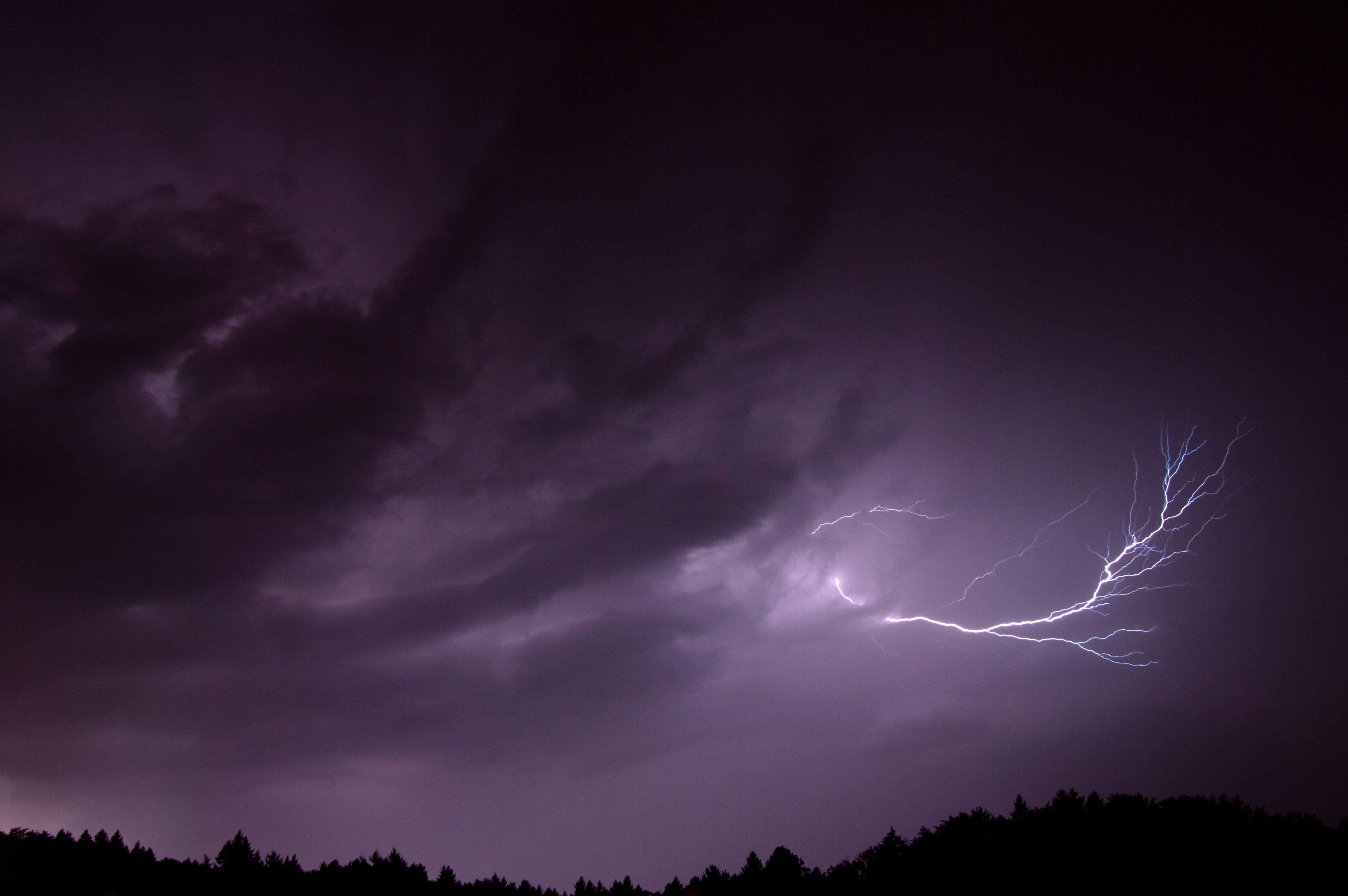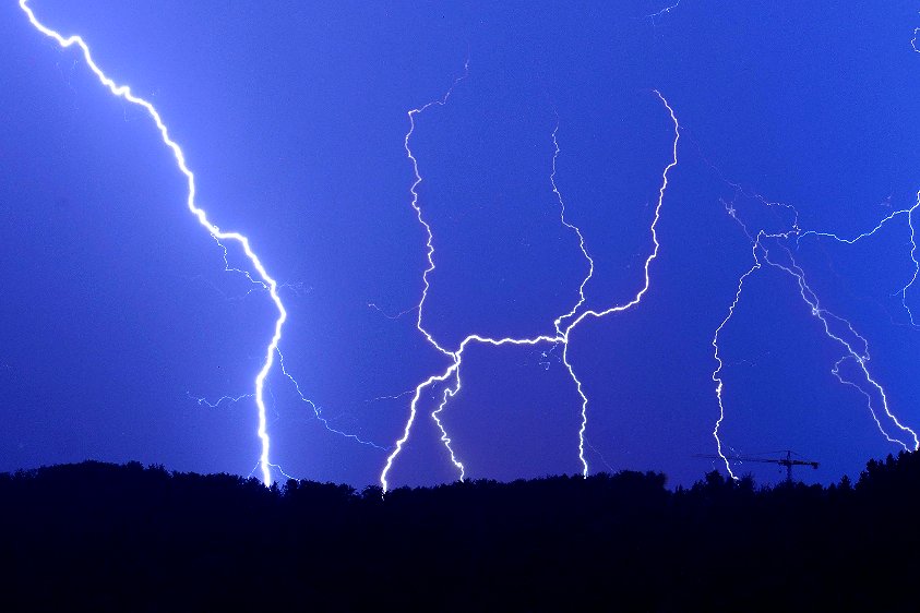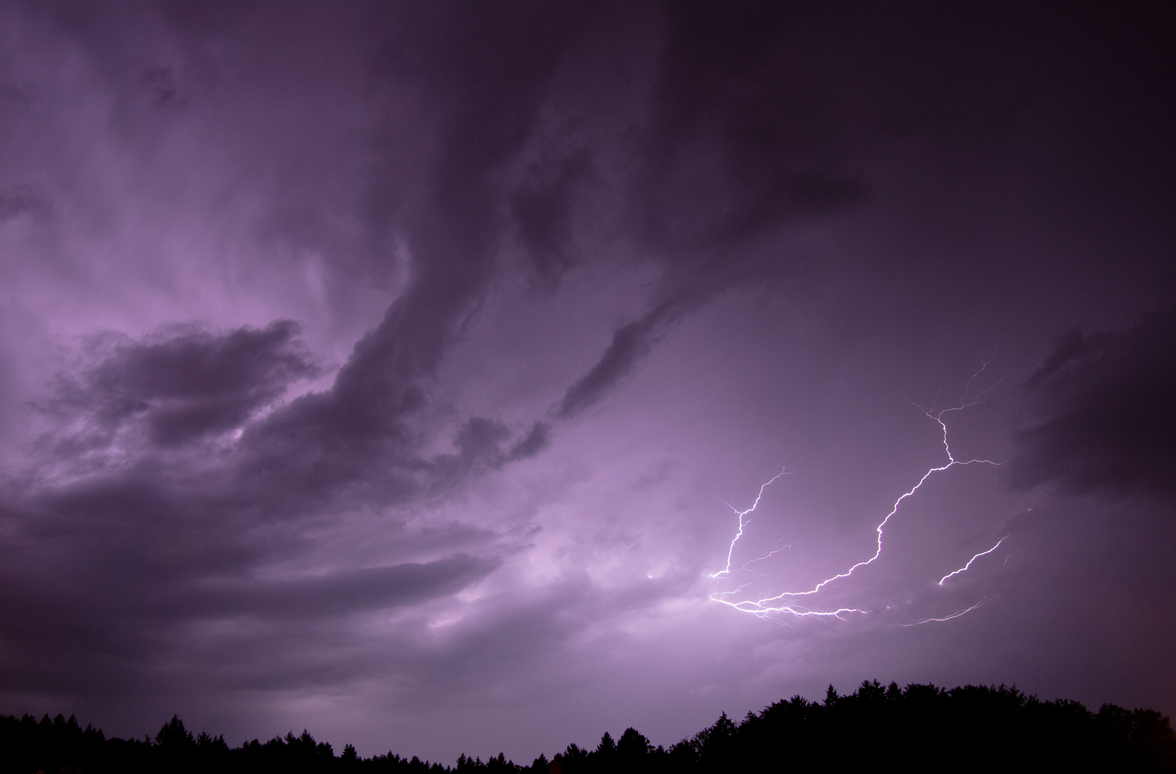Die gestrige Linie traf uns auch, war intensiv, aber nicht unwetterartig. Bei meinem Wohnort auf einem Hügel in Freiburg (exponiert, 100m über der Stadt) gab es stürmische Böen (schätze mal 60 bis 80 km/h), heftigen Regen und eine beeindruckende Blitzfrequenz. Anfangs gab es recht viele CG's, jedoch in größerer Entfernung. Für passable Bilder hat's dennoch gereicht. Später, bei jedoch zunehmender Blitzfrequenz waren es fast nur noch CCs. Beeindruckend, aber weniger fotogen.
