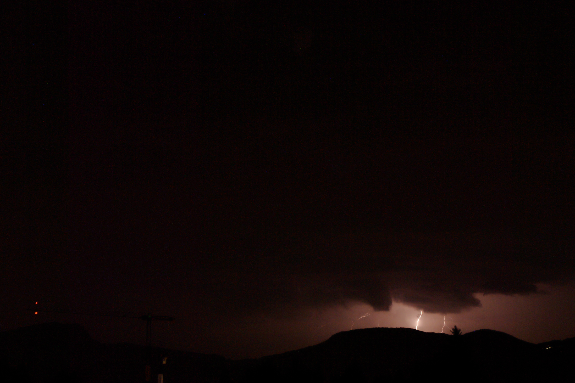 Wieder eine Nachtschicht mehr. Die Gewitterzone nach Mitternacht war von mässiger Aktivität. Die folgenden Bilder sind aus mehreren zusammengefügt und bearbeitet.
