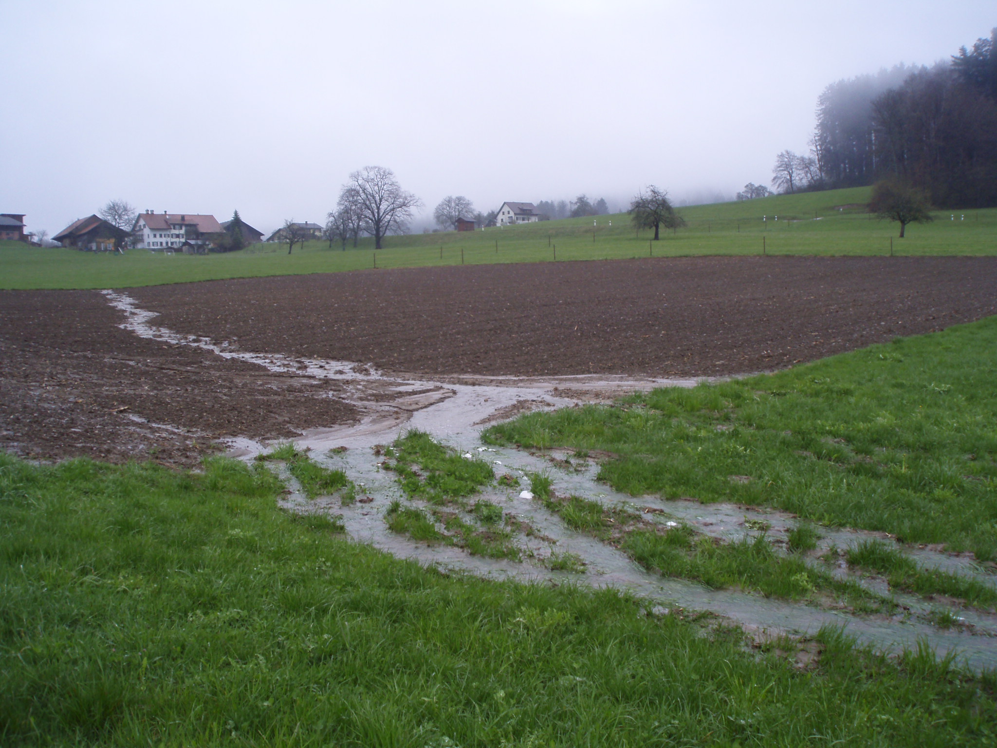 Wie an vielen Orten bildete sich auch hier ein kleiner Bach auf den Wiesen und äckern.