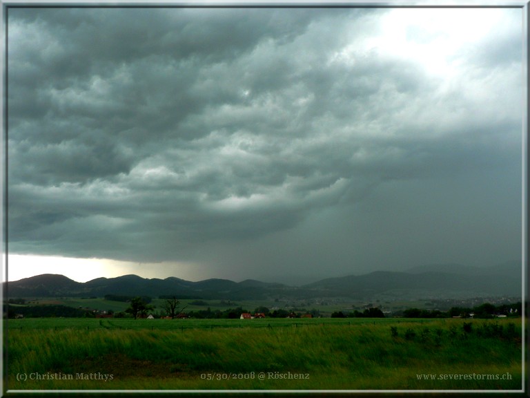 Endlich finde ich ein wenig Zeit, auch ein paar Zeilen zum Gewitter von gestern zu schreiben. An unserer Schule führten wir zur Euro 08 einen grösseren Anlass durch, so dass ich fast die ganze Woche keine Ahnung hatte, was wettermässig so abläuft. Ich war in dieser Woche dankbar für die Hilfe von Philippe, Chrigi, Säschu, Crosley, Silas, Grafur und meinem Vater. Ein Merci an dieser Stelle. Um 15.50 Uhr fuhren Michelle und ich von der OS Kerzers ab; vom Anlass her KO aber sonst OK! Sämtliche Aufnahmen stammen von Michelle. Ich selber war bei dieser Tour der Fahrerbimbo