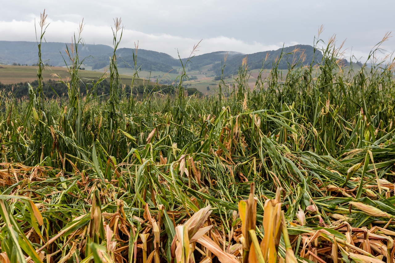 Das Maisfeld hier in Wil stand gestern noch und heute liegt es grösstenteils Flach. Die Weinbauern schauten das ganze Gelände ab und machten sich sorgen um die Trauben.