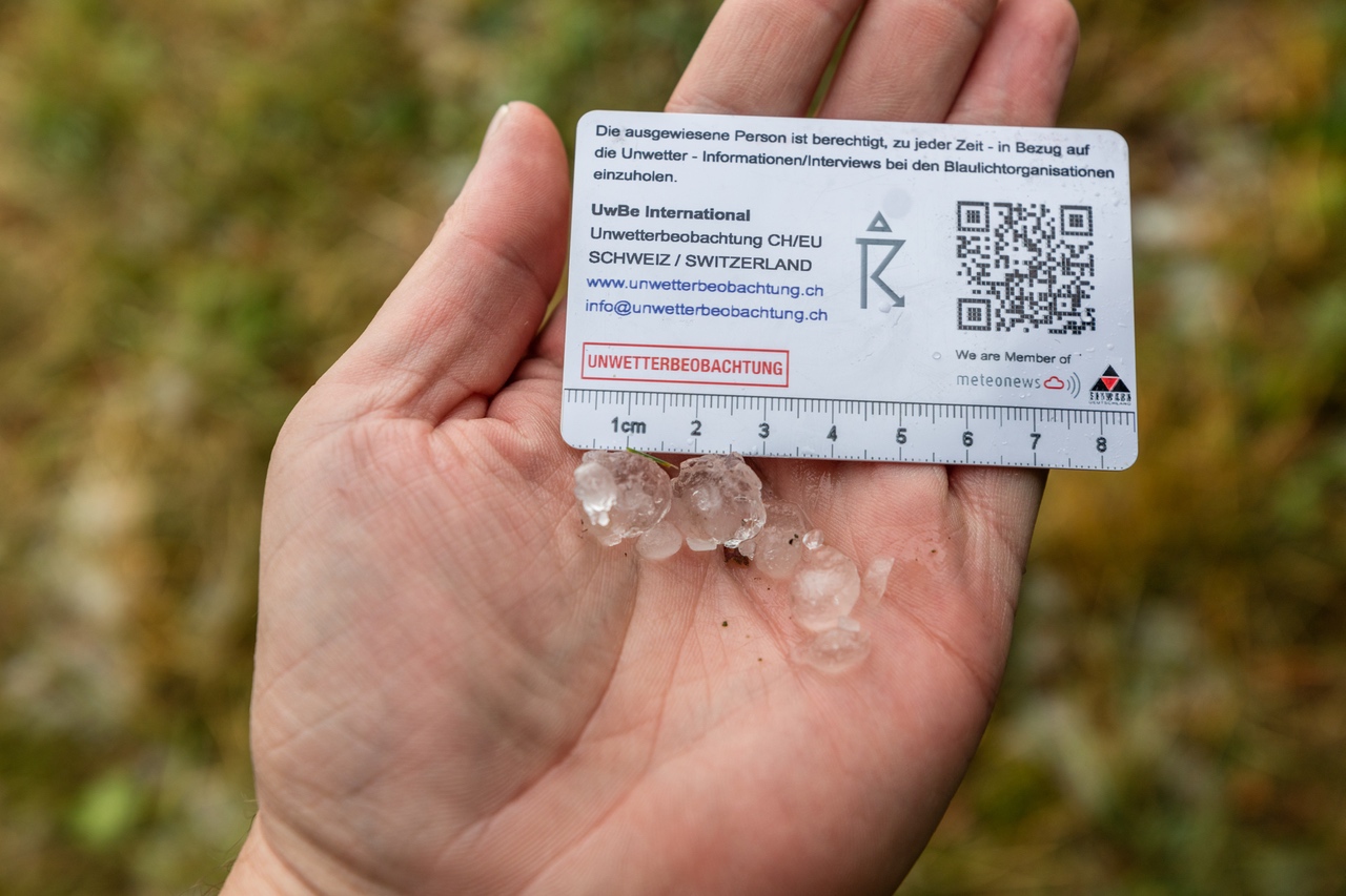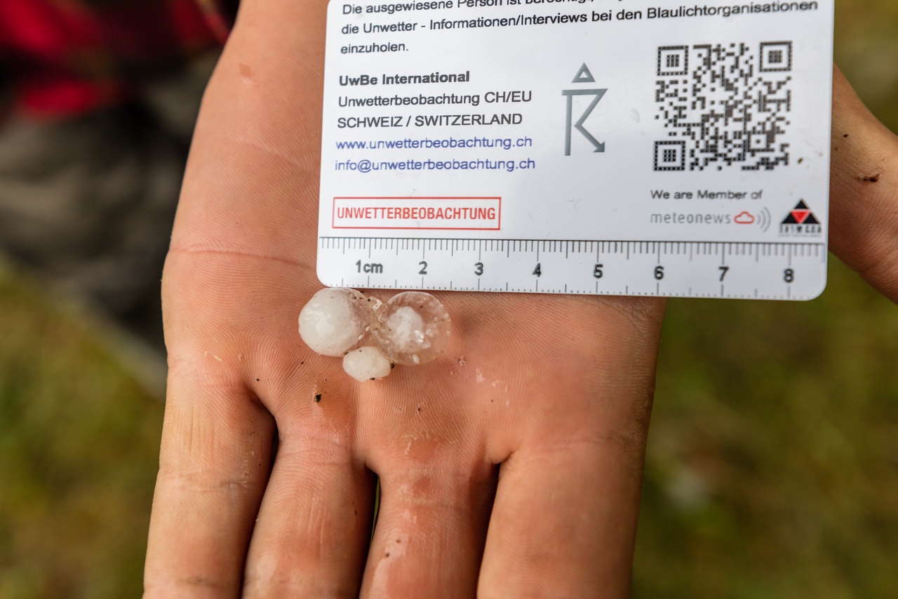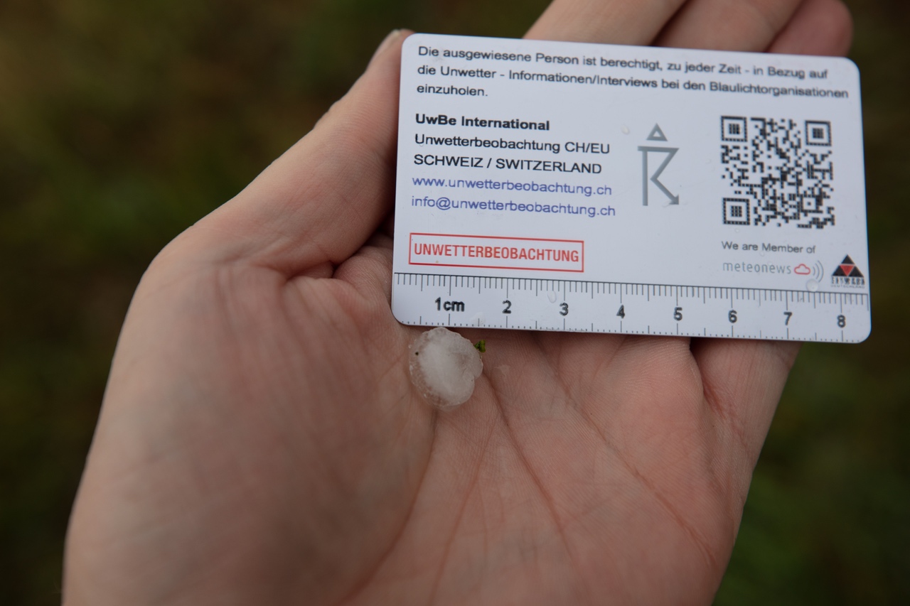 Hagelkörner bis 1.5cm gefunden. Die Körner dürften durchaus auch 2.5cm gross gewesen sein, denn die Fotos entstanden rund 2 Stunden nach dem Durchzug der Zelle.
