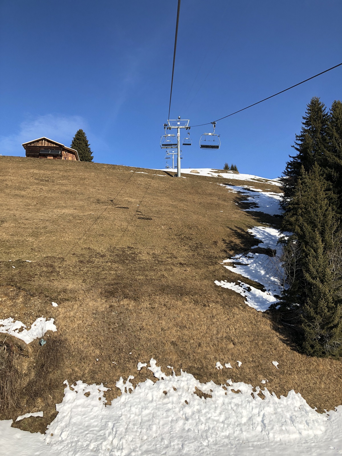 Von Dienstag bis Freitag ruf das Wetter eher Frühlingsgefühle hervor. Der Himmel war meist blau. Der Südhang im unteren Bereich Richtung Brigels eher braun: