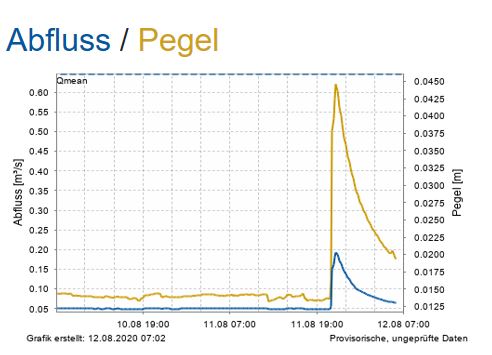 Jetzt hatte die Gewitter im Einzuggebiet des Baches so viel Niederschlag gebracht das unser Bach hoch ging und wir kein Tropfen davon abbekommen haben.