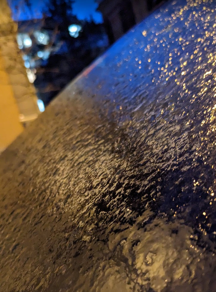 kurzes update aus Freiburg im Breisgau (-2°.5°)- alle Strassen spiegelglatt - obwohl es noch nicht mal Niederschlag hatte (dürfte vom Nebel kommen) , aber Autos haben alle einen Eispanzer. Geräumt sind nur die meisten Strassen, wehe dem der mit Velo oder zu Fuss unterwegs ist - das wird nicht besser!