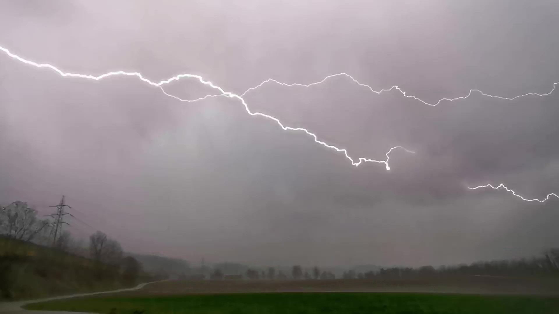 Hier noch das kurze Video vom 3-Blitz-Gewitter am 28.3. Zeitraffer des Aufzugs Filmrichtung Süd-West, einen Blitz und die Böen mit Hagel