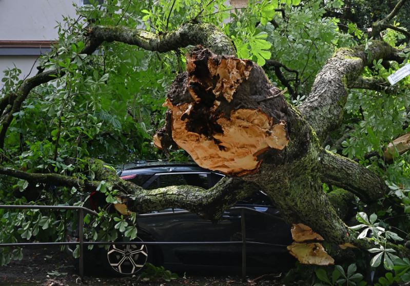 Zum Glück sass da niemand im Auto. Es ist aber unklar, obs wirklich beim Durchzug eines Gewitters war oder ob der Baum einfach alt war.