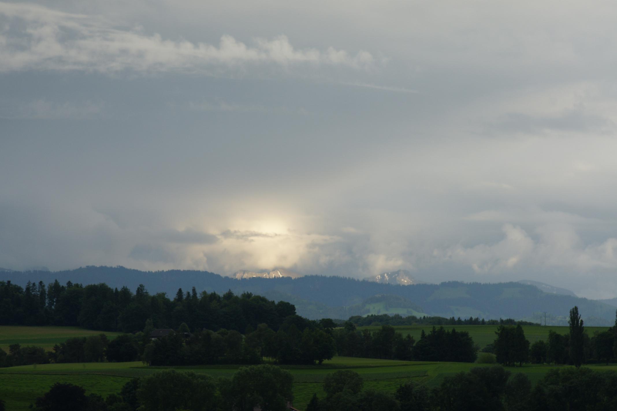 Mein Gewitter hängt immer noch über dem Solothurner Wasseramt fest und hat auf der A1 zu einem Unfall und Sichtbehinderungen geführt. Auch in der Region Payerne gibt es Sturmschäden.