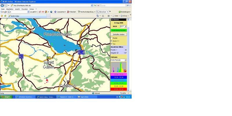 Zuhause habe ich dann auf BLIDS gesehen, wo die eingeschlagen haben.... in der Bucht beim kleinen Hafen in Arbon, wo ich dieses Jahr schon einmal schöne CG's erwischte (siehe grüne Quadrätchen):