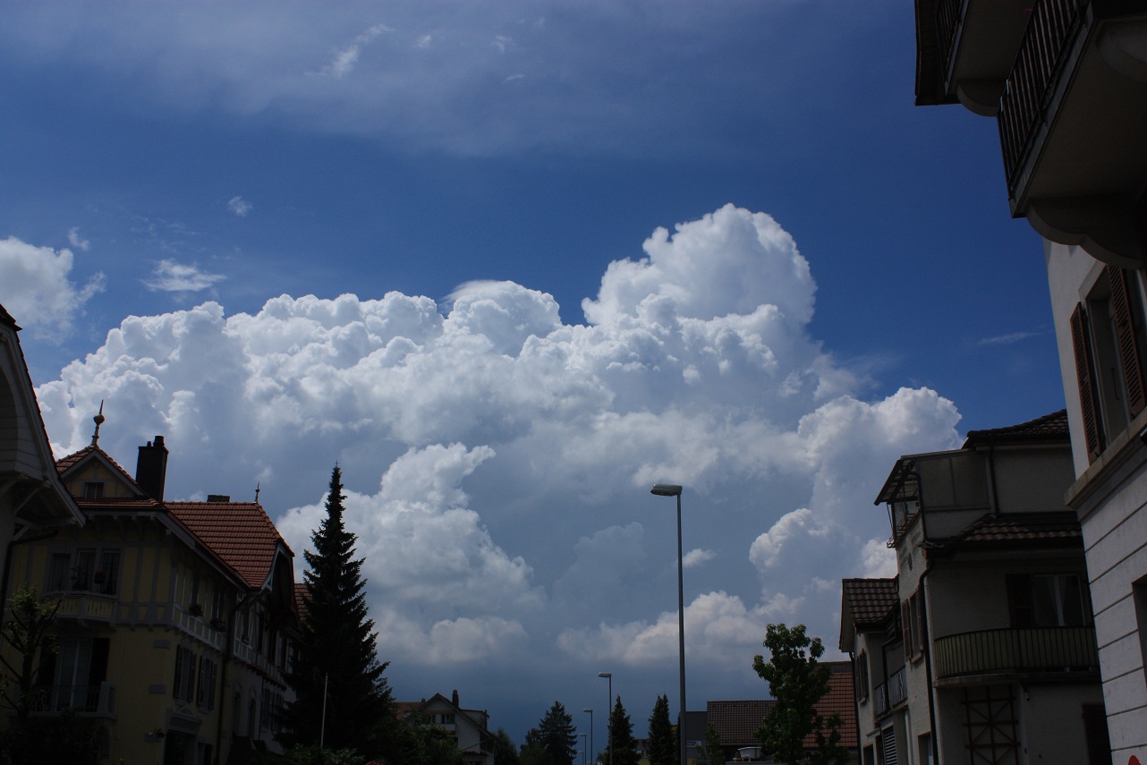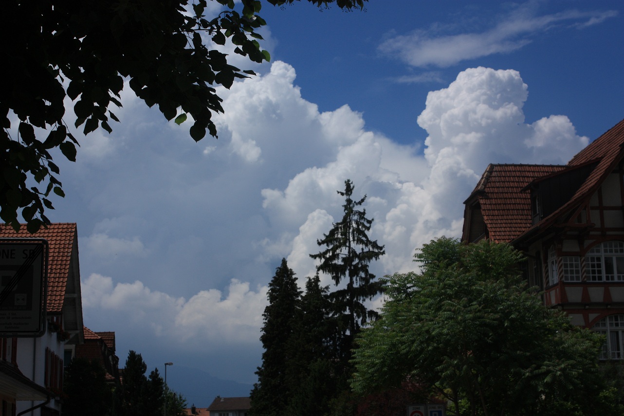 Hier im Thurgau weht bei strahlendem Sonnenschein ein kühles lüftchen. überhaupt nicht mehr so drückend schwül wie gestern! die paar Quellungen richtung Süd-Osten sehen geradezu bemitleidenswert aus.