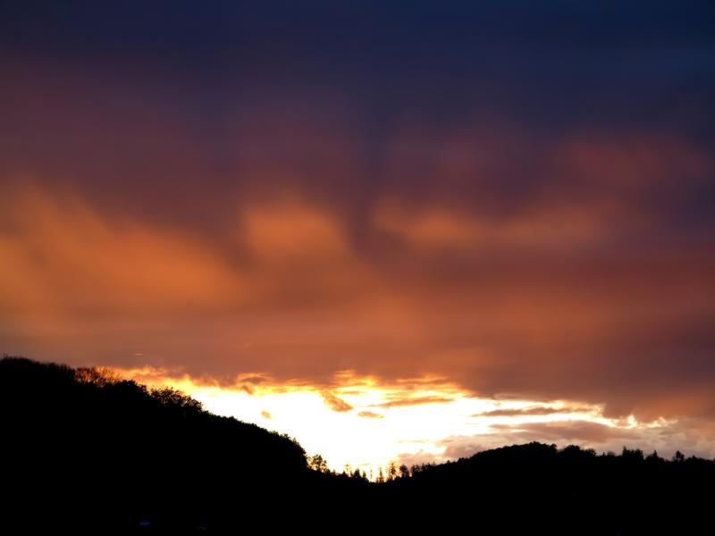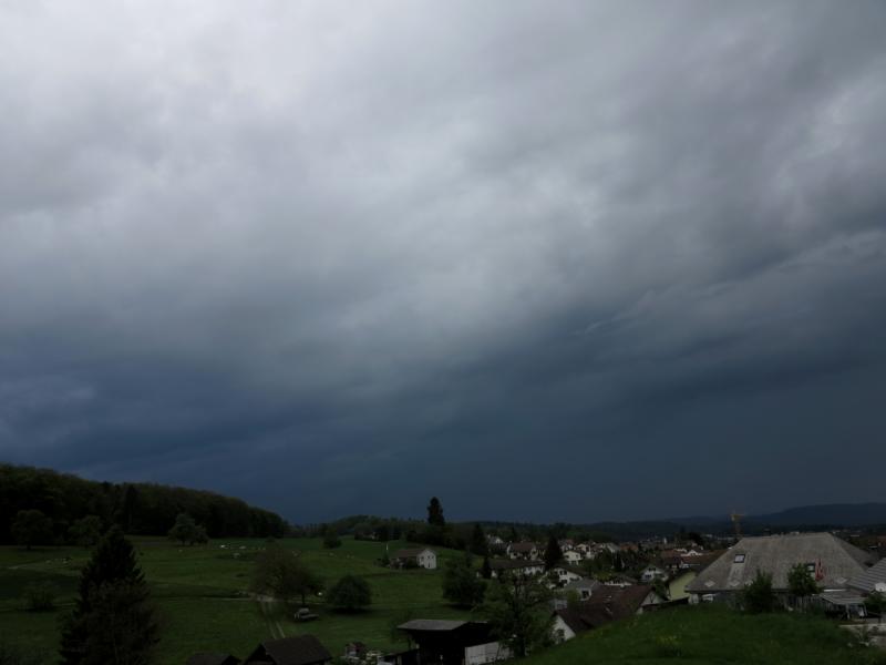 Hier noch zwei Bilder, soeben aufgenommen. Jetzt müsste es nur noch blitzen, dann hätte man das volle Programm. Es scheint jedoch wenig bis keine elektrische Aktivität vorhanden zu sein.