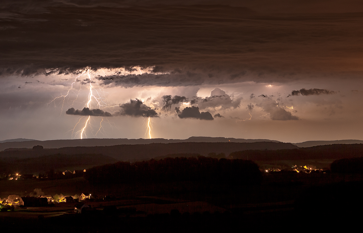 Habe mich ziemlich spontan mit Crosley und Sternchen99 bei Anwil BL auf freiem Feld positioniert. Von dem anfänglichen Geflackere war allerdings nicht mehr viel übrig, die Zelle schwächte sich rasch ab und es gab nur noch wenige Blitze. Diese waren dafür einigermassen fotogen ;)