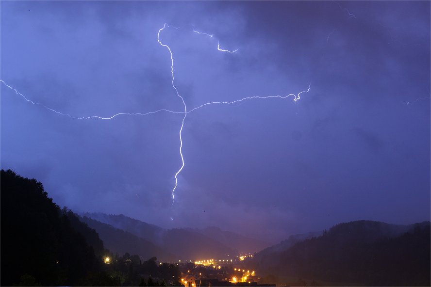 Sehr schöne Aufnahme! Du hattest mehr Glück. Es ist vermutlich der Blitz bei Bonstetten. Ich war in der Nähe, auf dem Rückweg von Lieli und fuhr genau in dem Moment unter der Autobahnbrücke durch... Hättest Du allenfalls eine genaue Exif-Zeitangabe Deiner Aufnahme?
