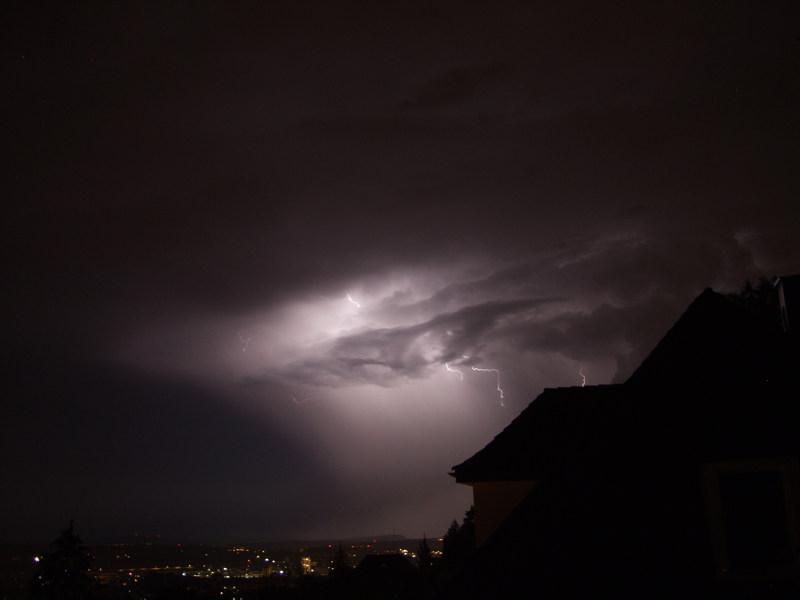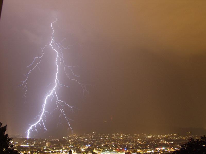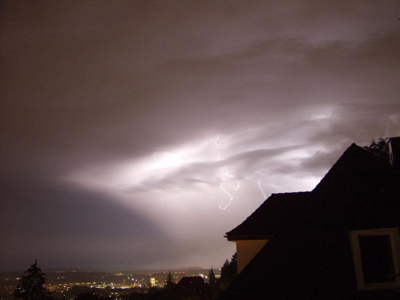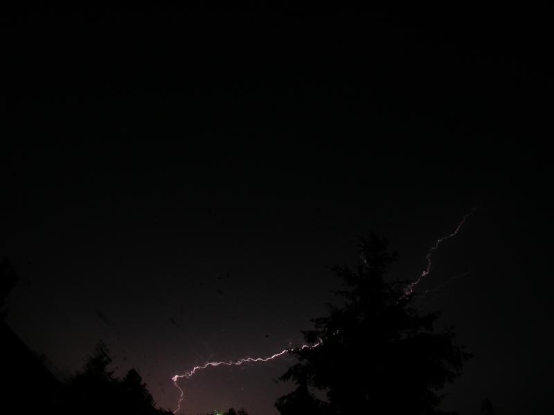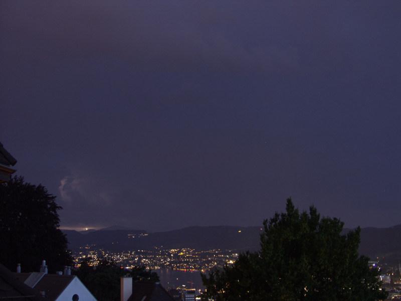Um 23h kam dann doch noch ein Gewitter nach Zürich, viele Wolkenblitze und ein paar wenige Erdblitze, einen habe ich erwischt: