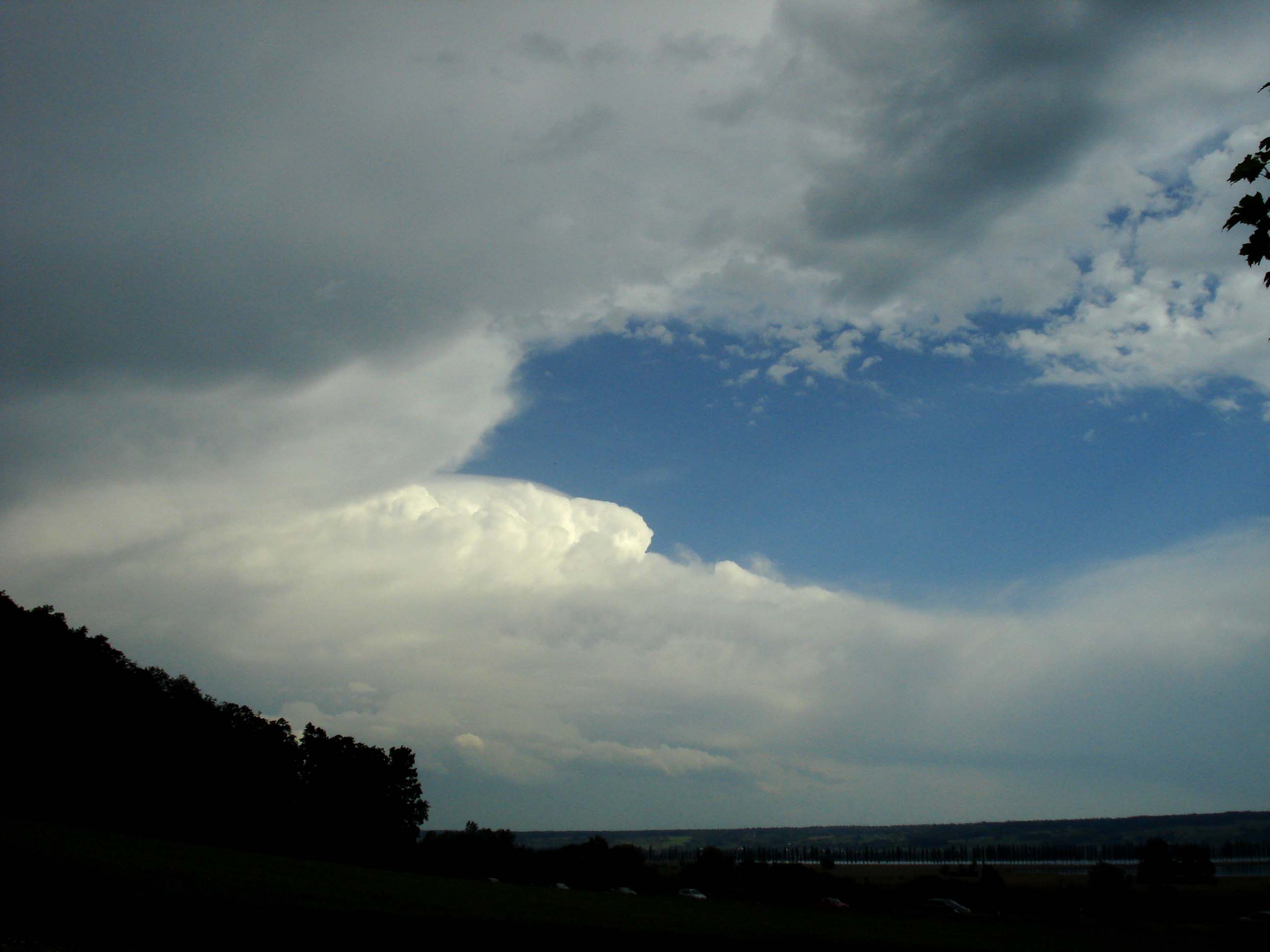 Danke Alfred für das Radarbild. Hier poste ich mal (Chasingbericht, Teil 1) die interessanten Fotos dazu von meinem 1. Standort in Attikon 15:54 Ortszeit.