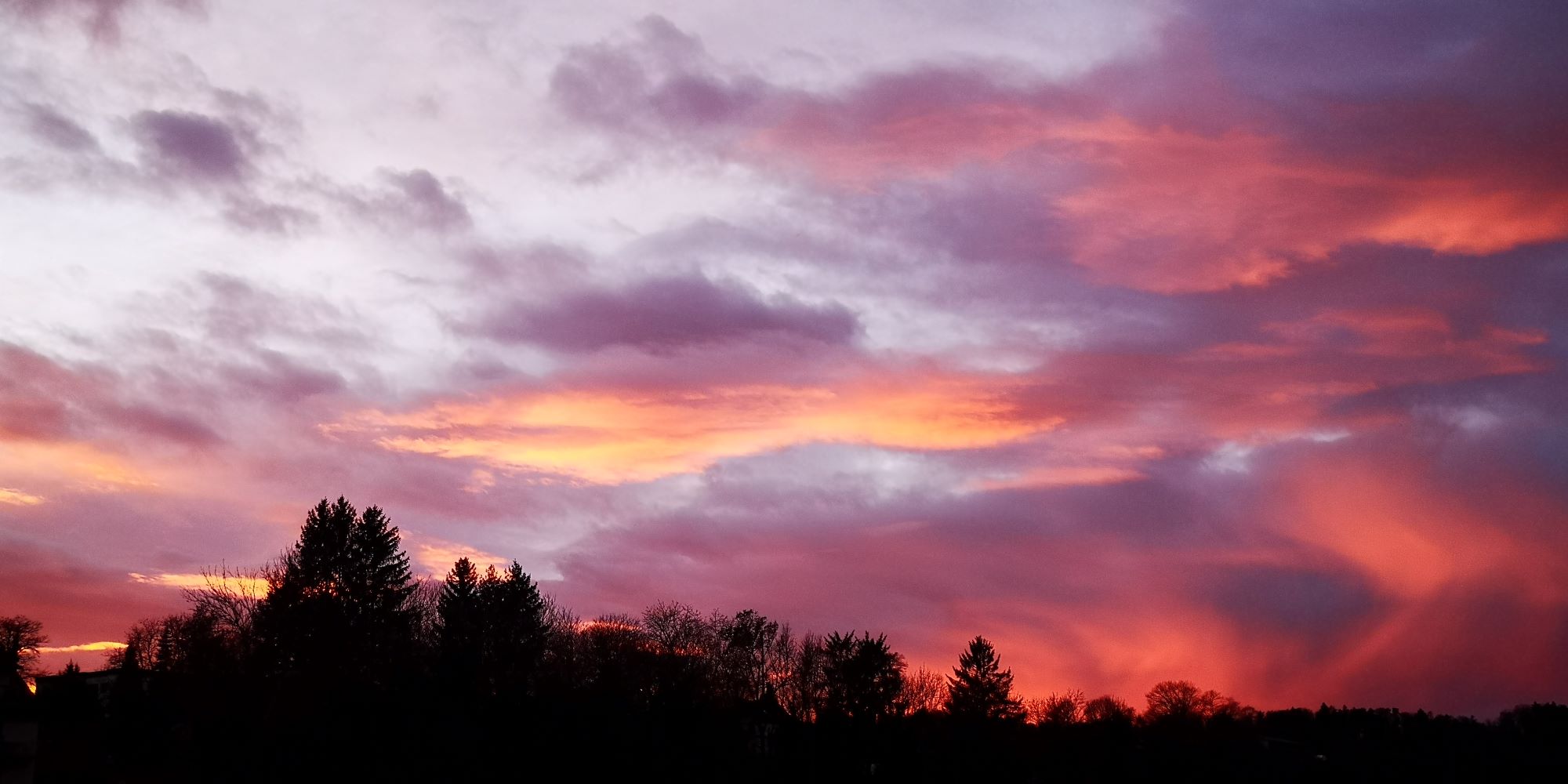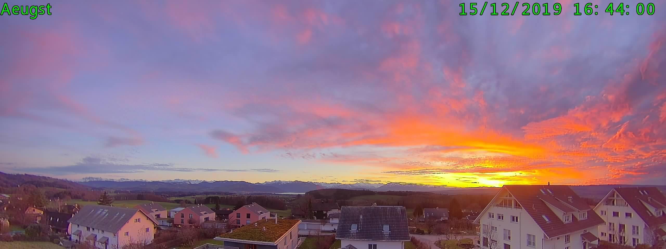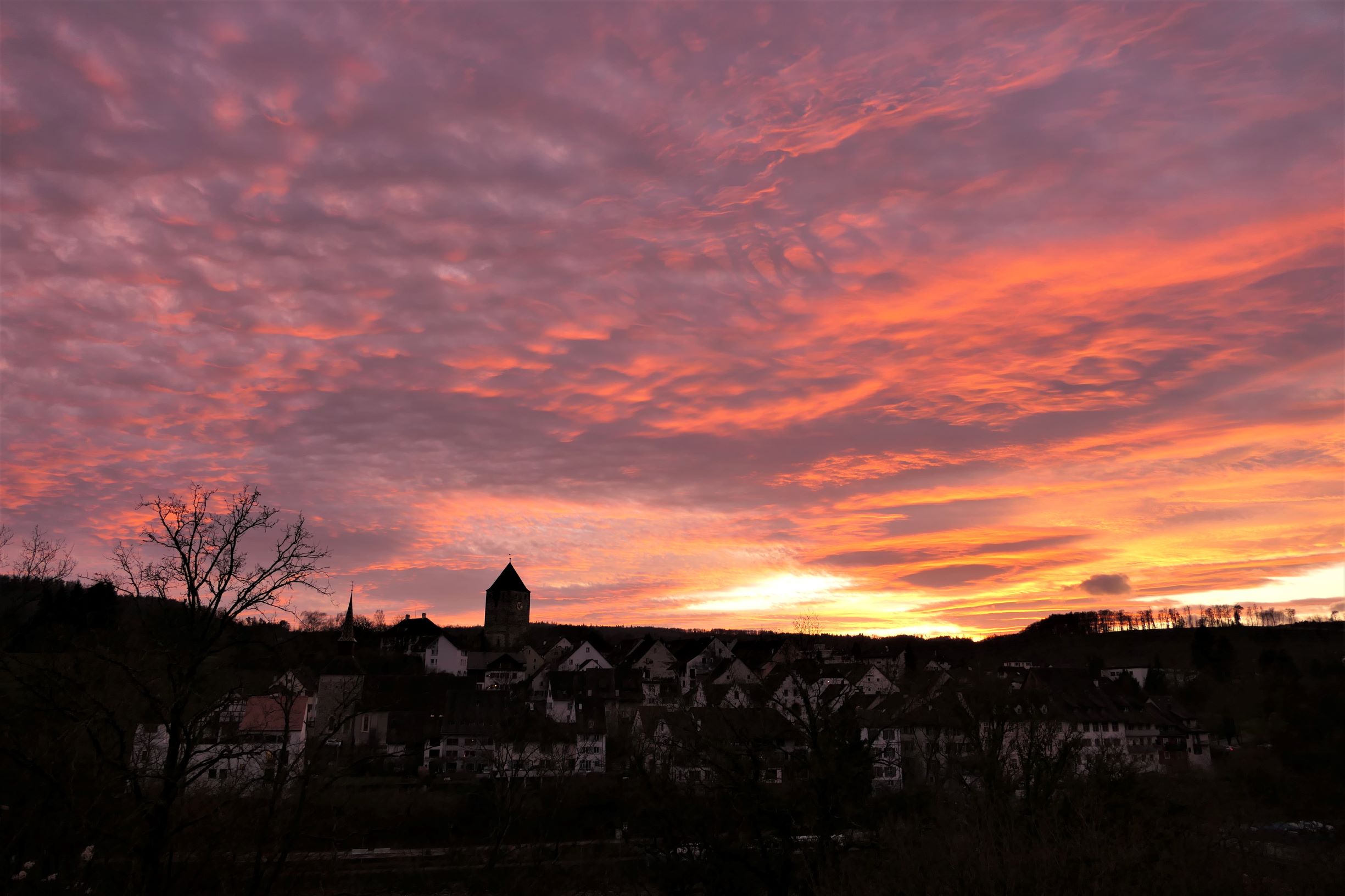 Auch in Uster eindrücklicher Sonnenuntergang, die Sonne hat den Regenvorhang von hinten bestrahlt.