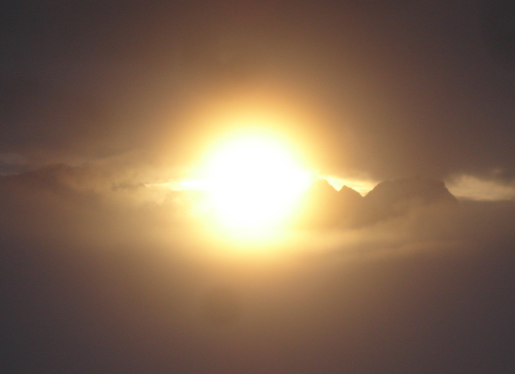 Guten Morgen. Ich nahm dieses Foto in 2011 aus Amden. Ich war genau im richtigen Ort im richtigen Moment, als die Sonne durch die Berge zw. zwei Wolkenschichten schien. :-
