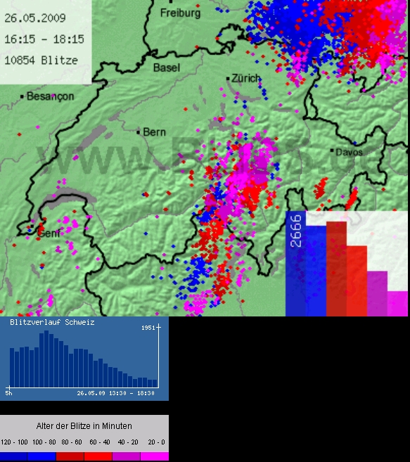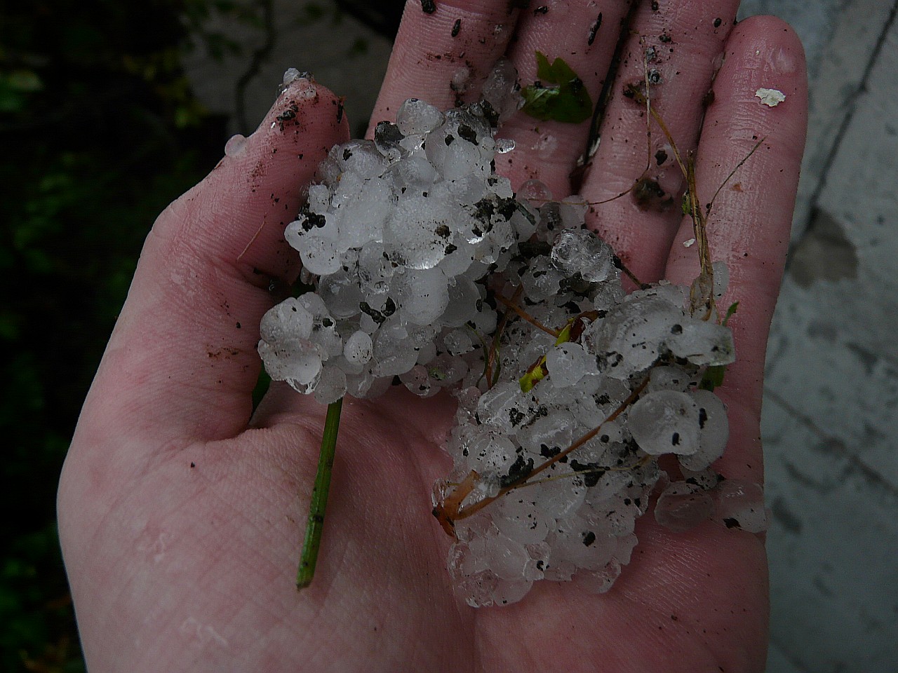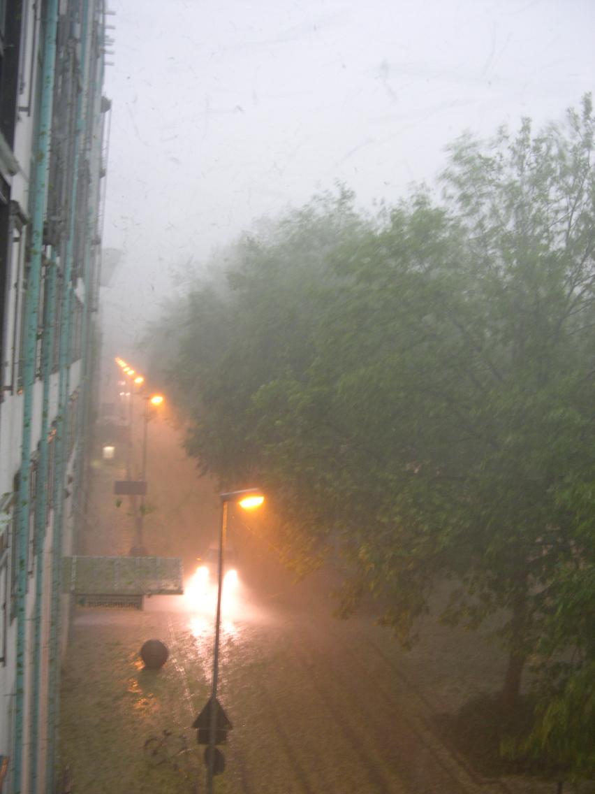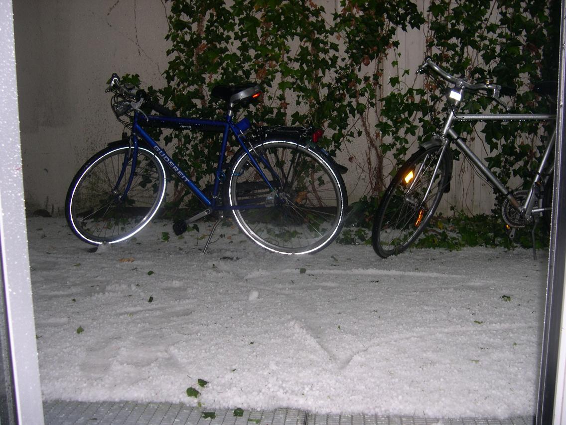 Wollte gerade meine Mittagspause beenden als das ganze hier aus Richtung Bern aufzog. Erst rabenschwarze Wand und dahinter dann eine giftgrüne Wolke. Danach setzte dann auch sofort ordentlich Niederschlag ein der zunehmend in Hagel überging. Der Hagelschlag dauerte ca. 5 Minuten! mit bis zu 2,5 - 3 cm grossem Hagel. Mein Regenmesser zeigte mir dann auch eine stündliche Regenrate von bis zu 250 l/m²
