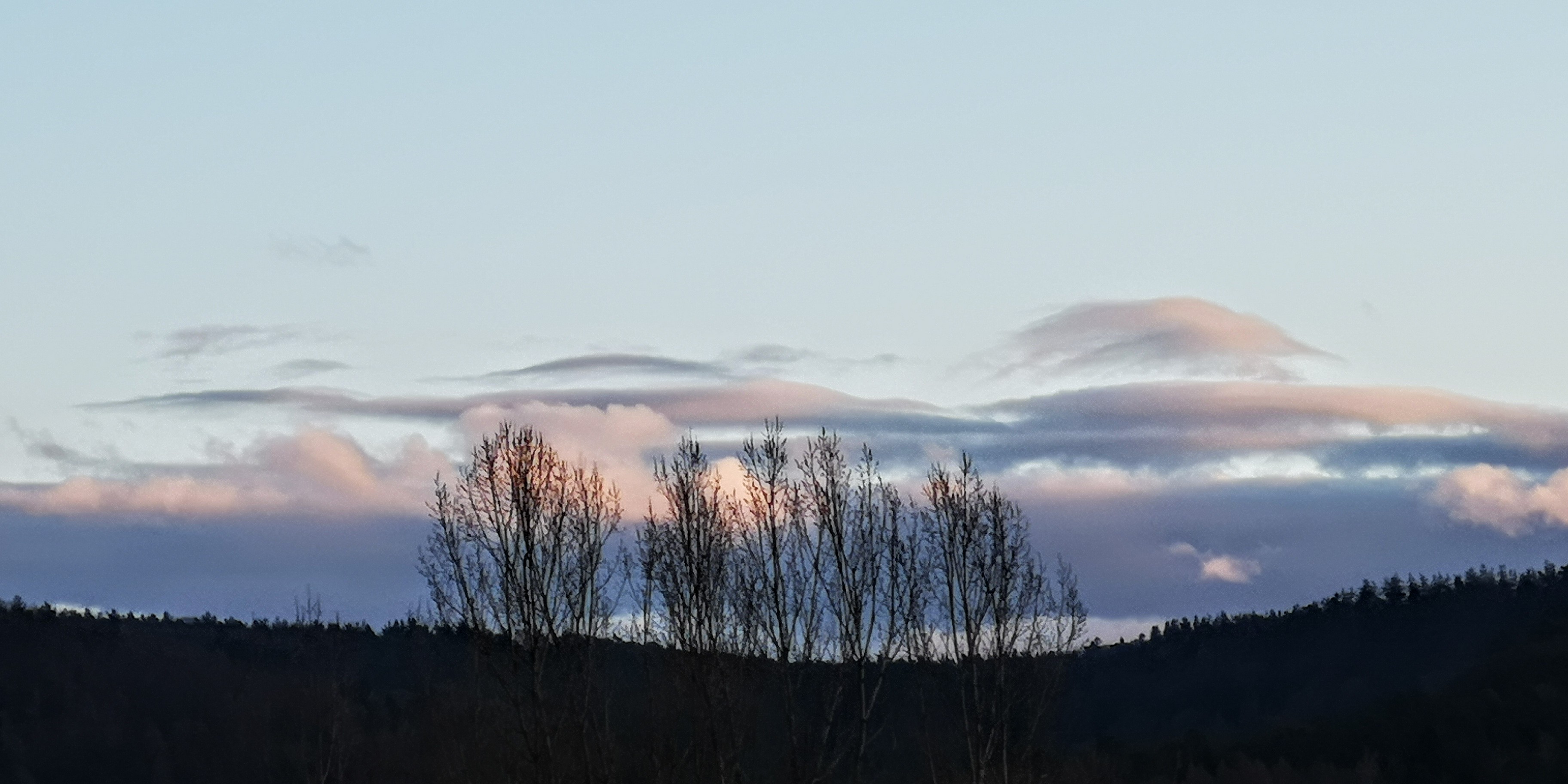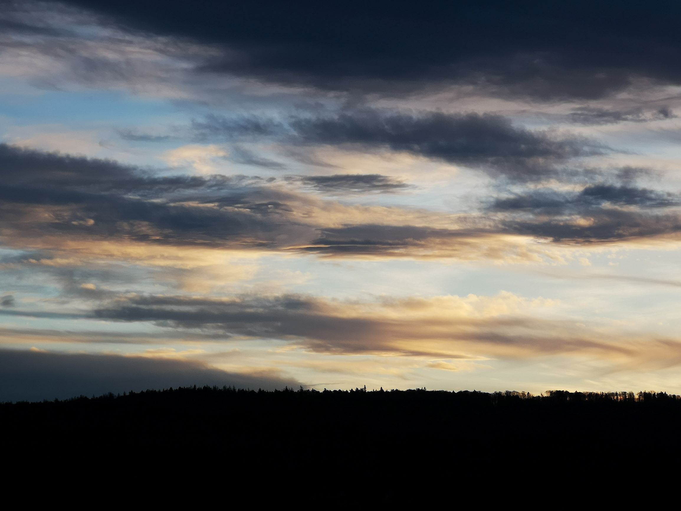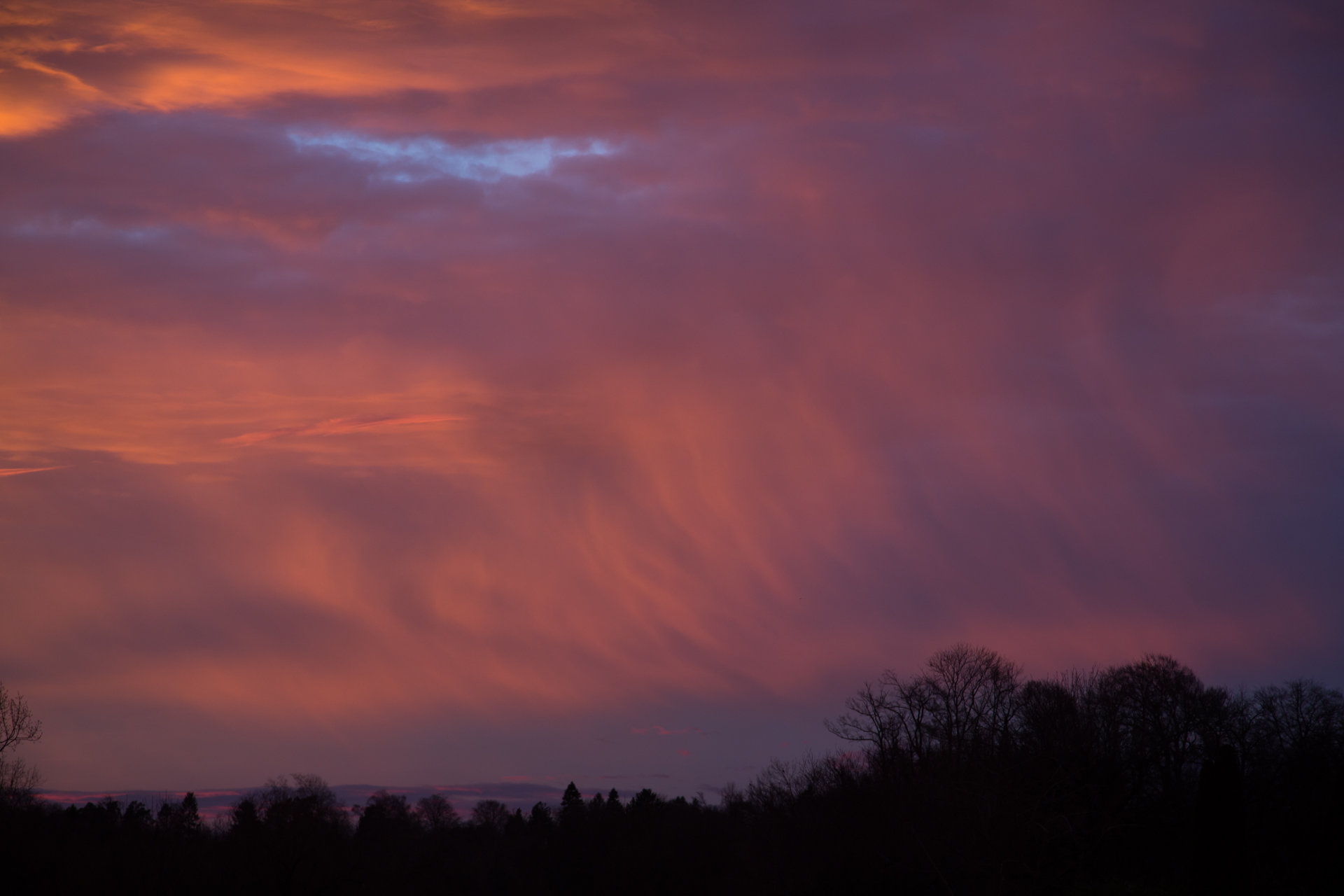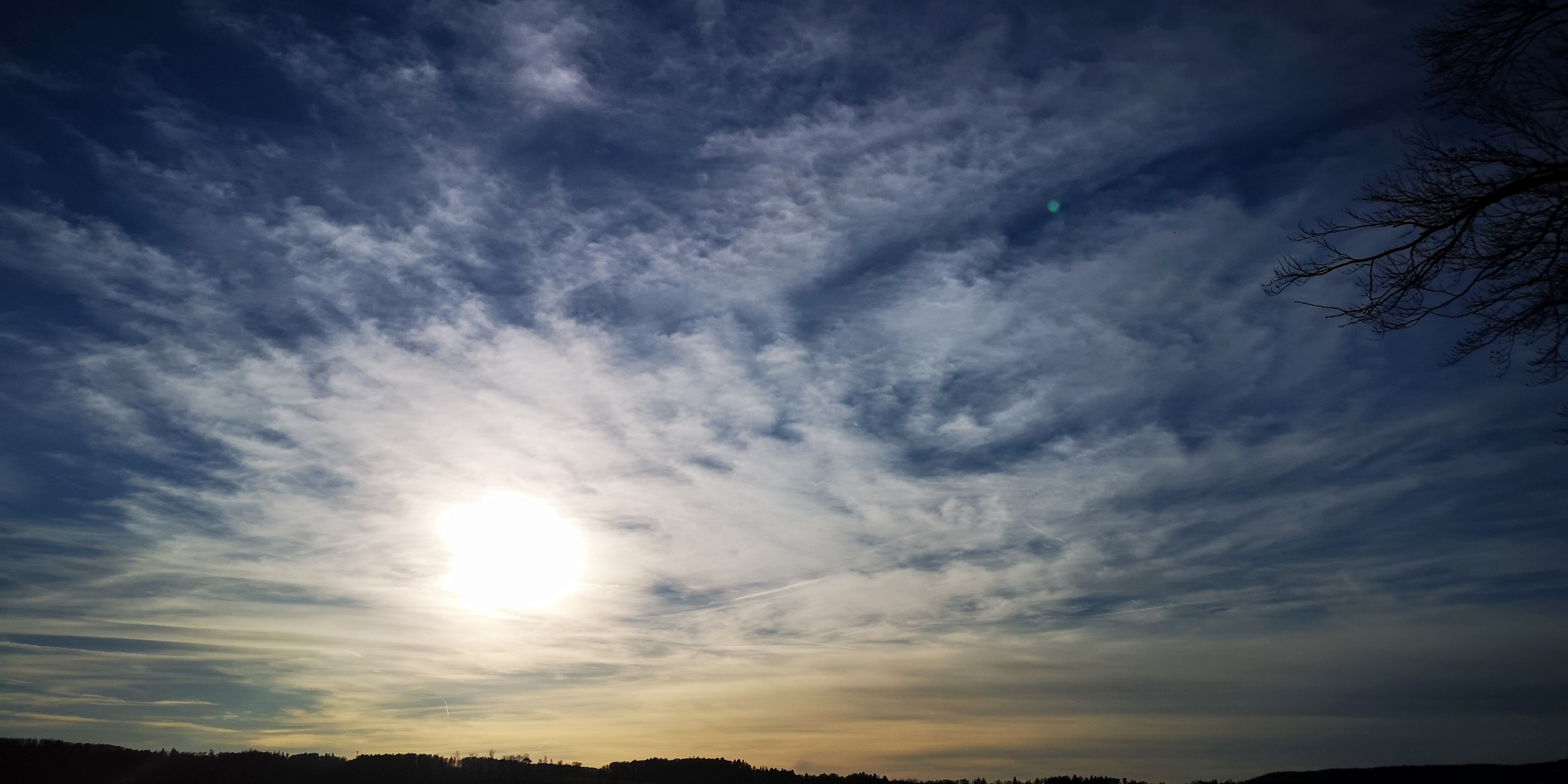 Eigentlich erhoffte ich mir heute von den vielen Schleierwolken eine Nebensonne. Leider wollte sie sich nicht so richtig zeigen, war wohl ein bisschen scheu. Der Himmel sah trotzdem toll aus: