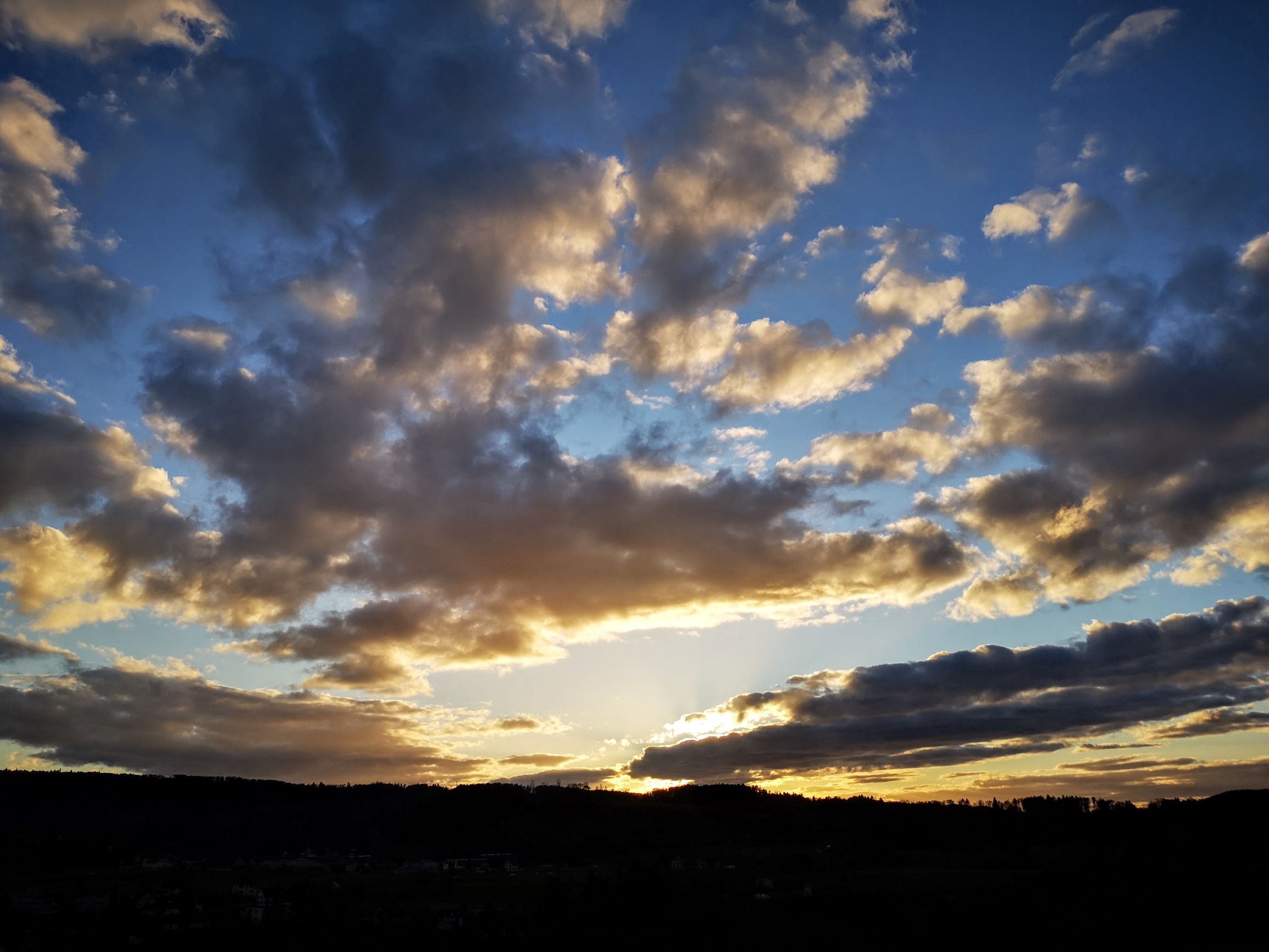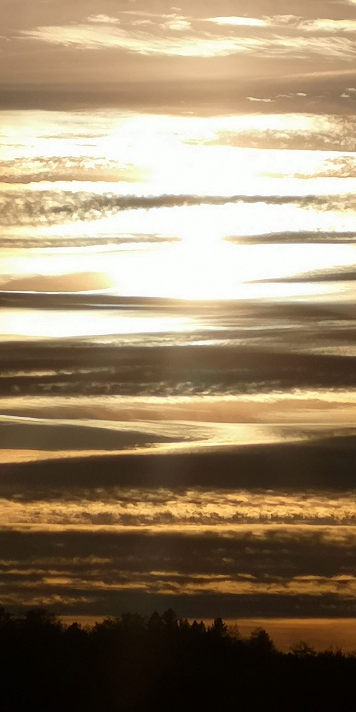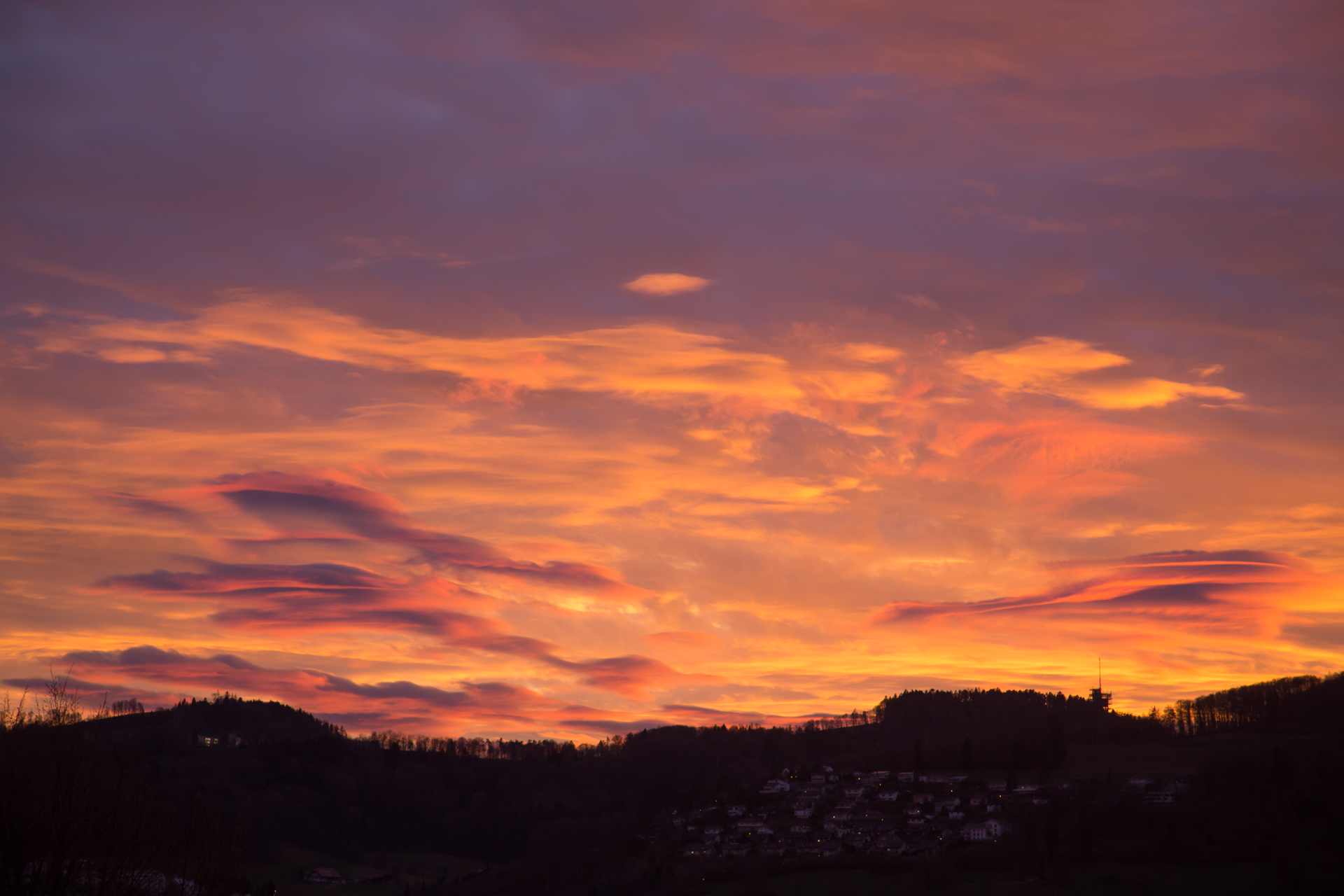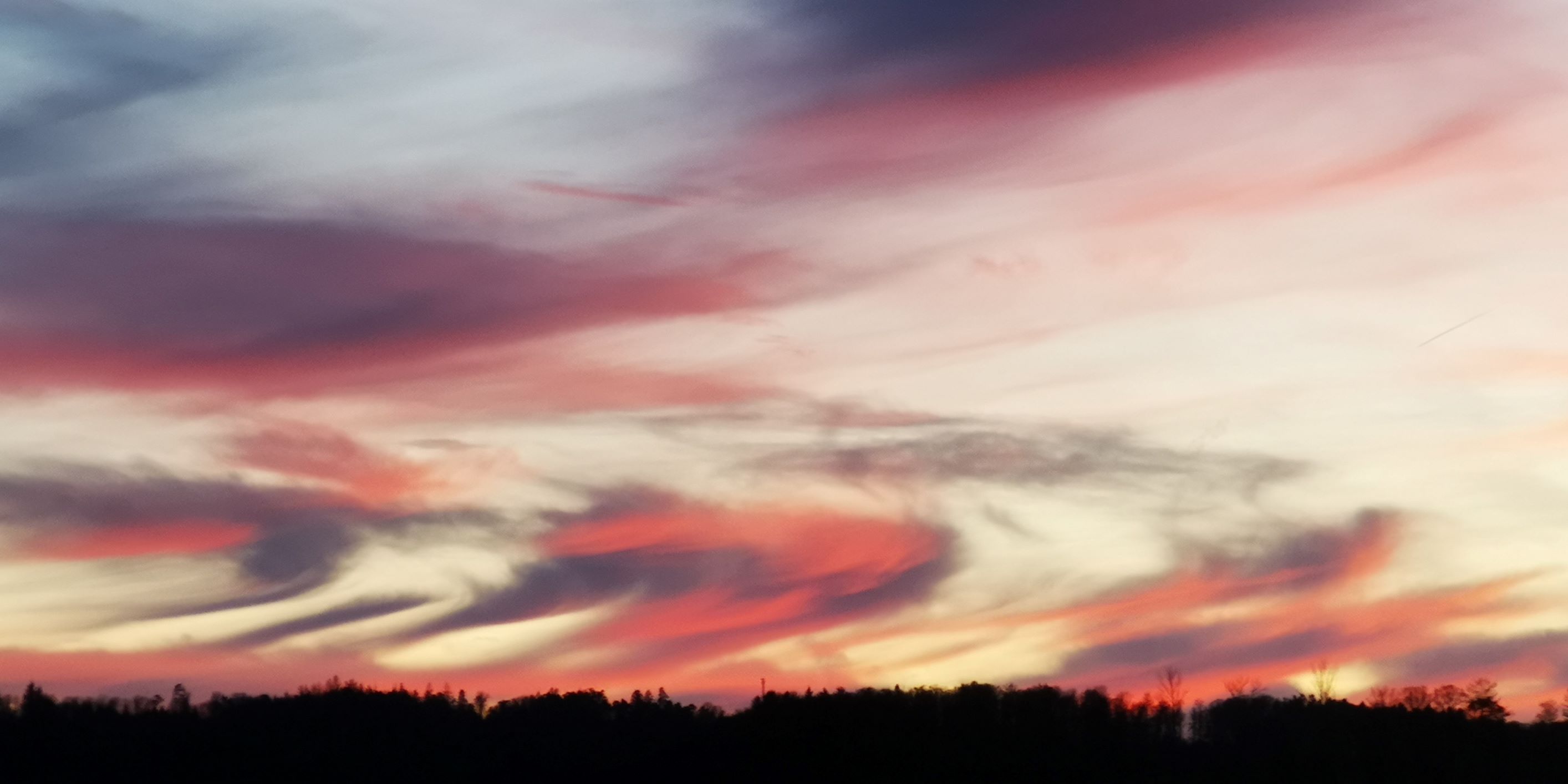 Nach den vielen Halos tagsüber am 8.3.2020 war der Abendhimmel nicht weniger spektakulär. Nicht wegen den unscheinbaren und kaum sichtbaren Nebensonnen, sondern wegen der Streifenoptik Fast wie mit dem Pinsel gemalt: