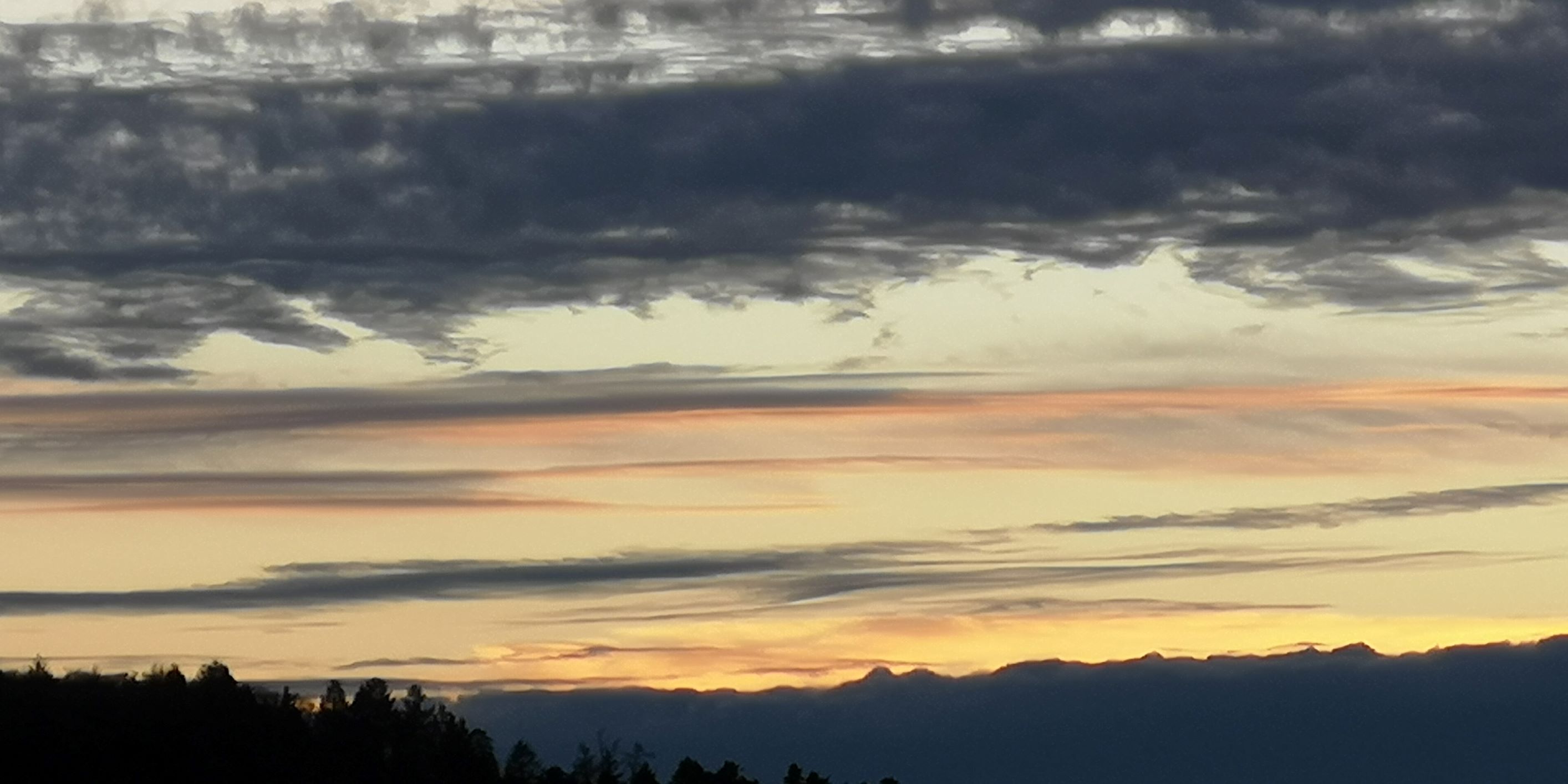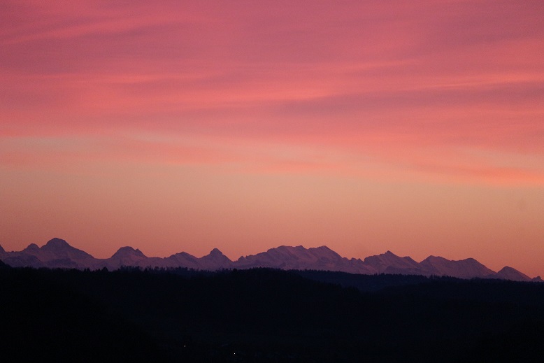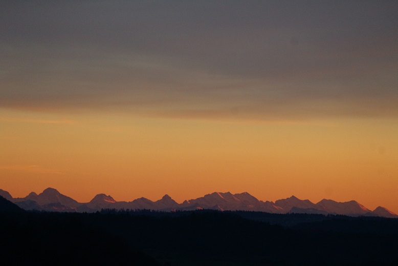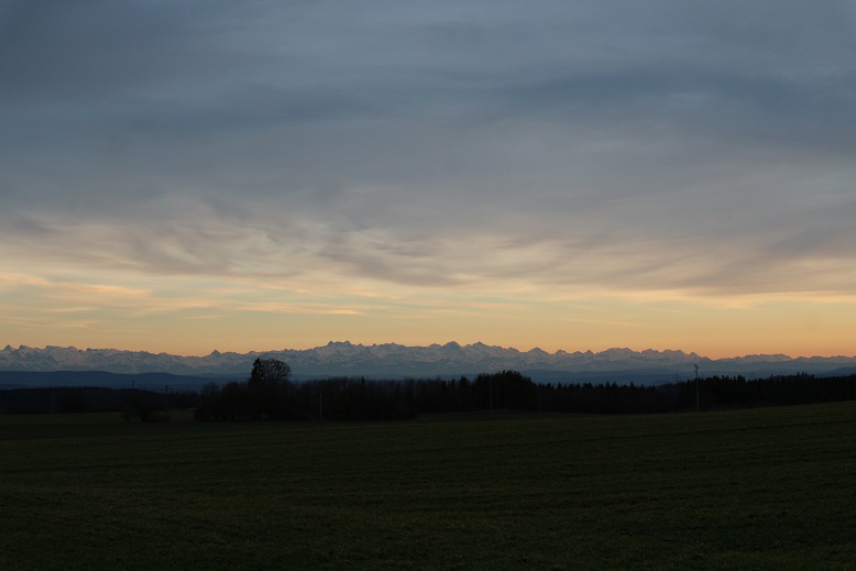 18.19: Eine anrückende Kaltfront, die sich als Alpenkamm tarnt und ein paar Farbstriche mussten fürs Abendrot reichen.