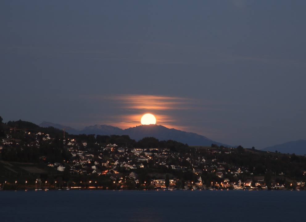 Mondaufgang über dem Federispitz, links davon Speer und Mattstock.