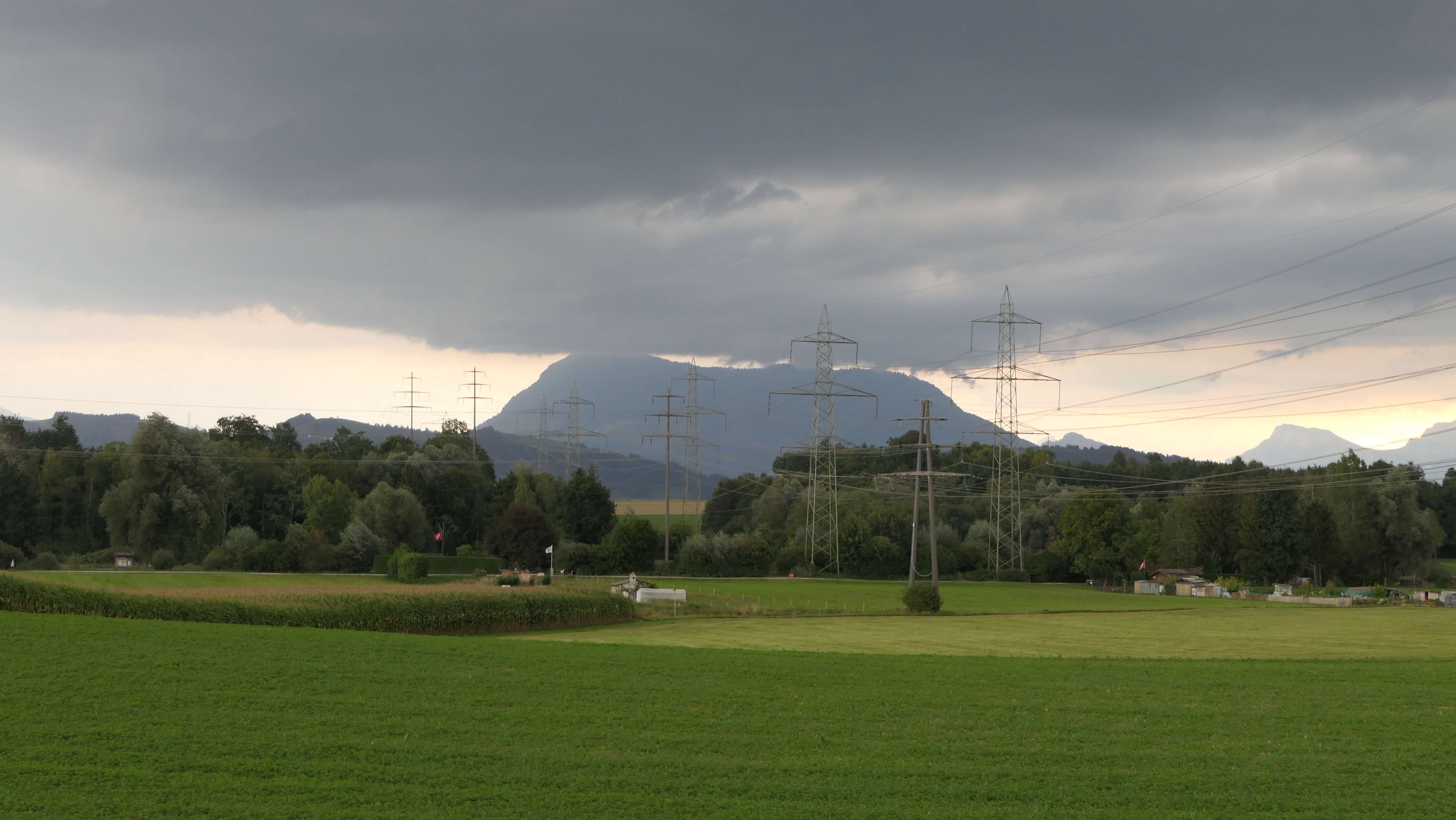 Der letzte Mohikaner dieser Gewittertage sei doch auch noch gewürdigt. Ziemlich isoliert stand er da, ein Einsiedler bei Einsiedeln. Das nochmalige Aufleuchten in Purpurrot habe ich verpasst, aber der Zeitraffervideo von Sellenbüren hat's aufgezeichnet.
