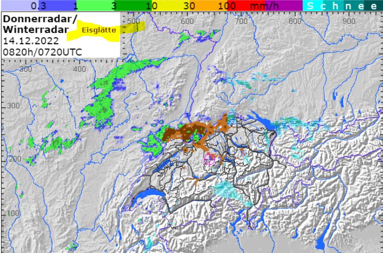 mir scheint die Schweiz kommt eher gut davon - im Oberrheingraben herrscht pures Chaos - die Notaufnahmen sind wegen Stürzen überbelegt in Freiburg. Und das sieht nicht so aus, als ob das die nächsten Stunden besser wird, wenn man sich das so anschaut. Spannende Temperaturverteilung.