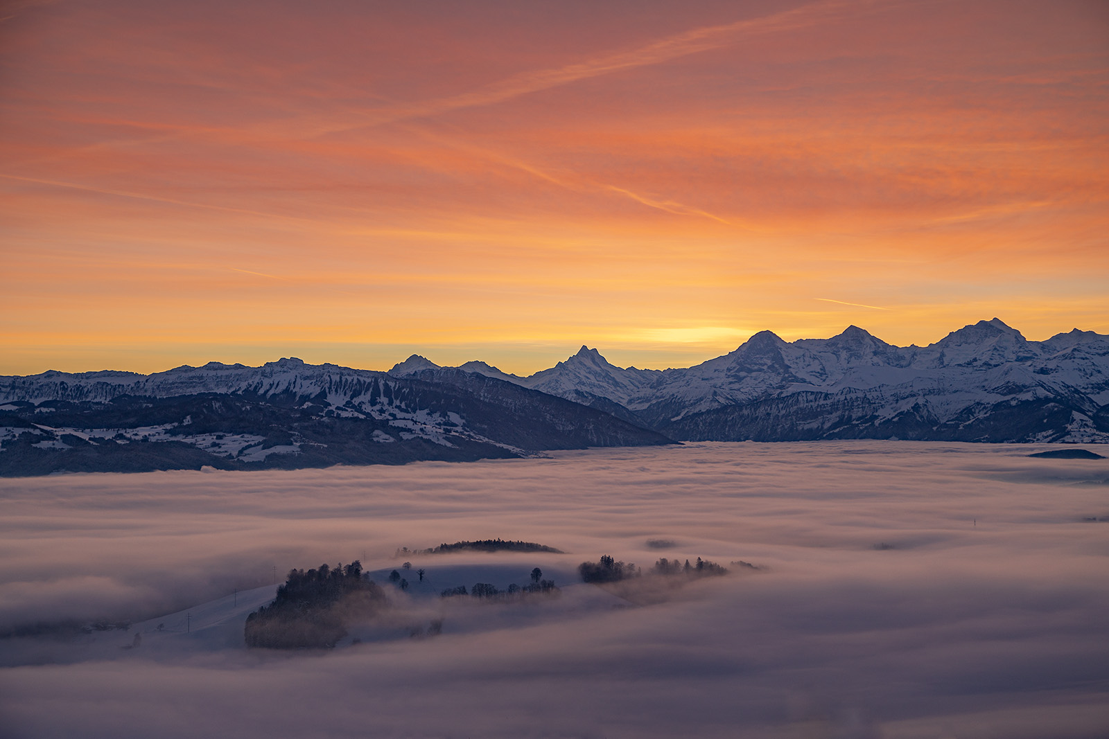 LEtzte Nacht war es windmässig ruhiger. Nebel konnte sich über dem Thunersee ausbreiten.