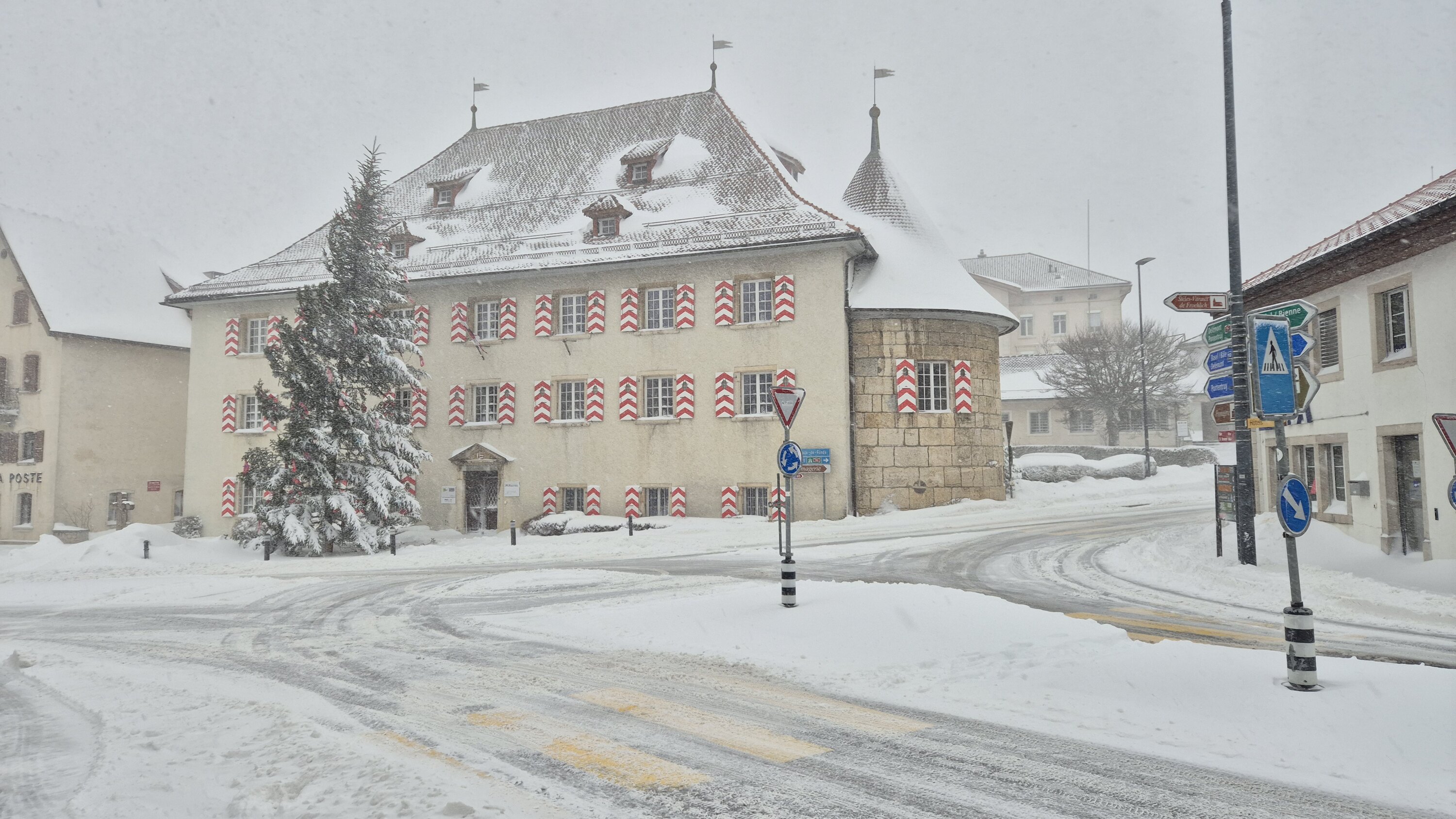Da es in Basel wie erwartet zu trocken und zu mild für eine Schneedecke blieb (von den aktuellen Signalen auf dem Radar kommt hier kaum was an), entschied ich mich heute für ein kleines Schneechasing im Jura (mit dem Zug). Die Region um La Chaux-de-Fonds schien mir anhand der Modelle und der Anströmung bei der Wetterlage keine schlechte Wahl zu sein. Und ich wurde nicht enttäuscht. Bereits bei meiner Ankunft in Saignelégier (982 m) am späten Vormittag präsentierte sich die Gegend tiefwinterlich: