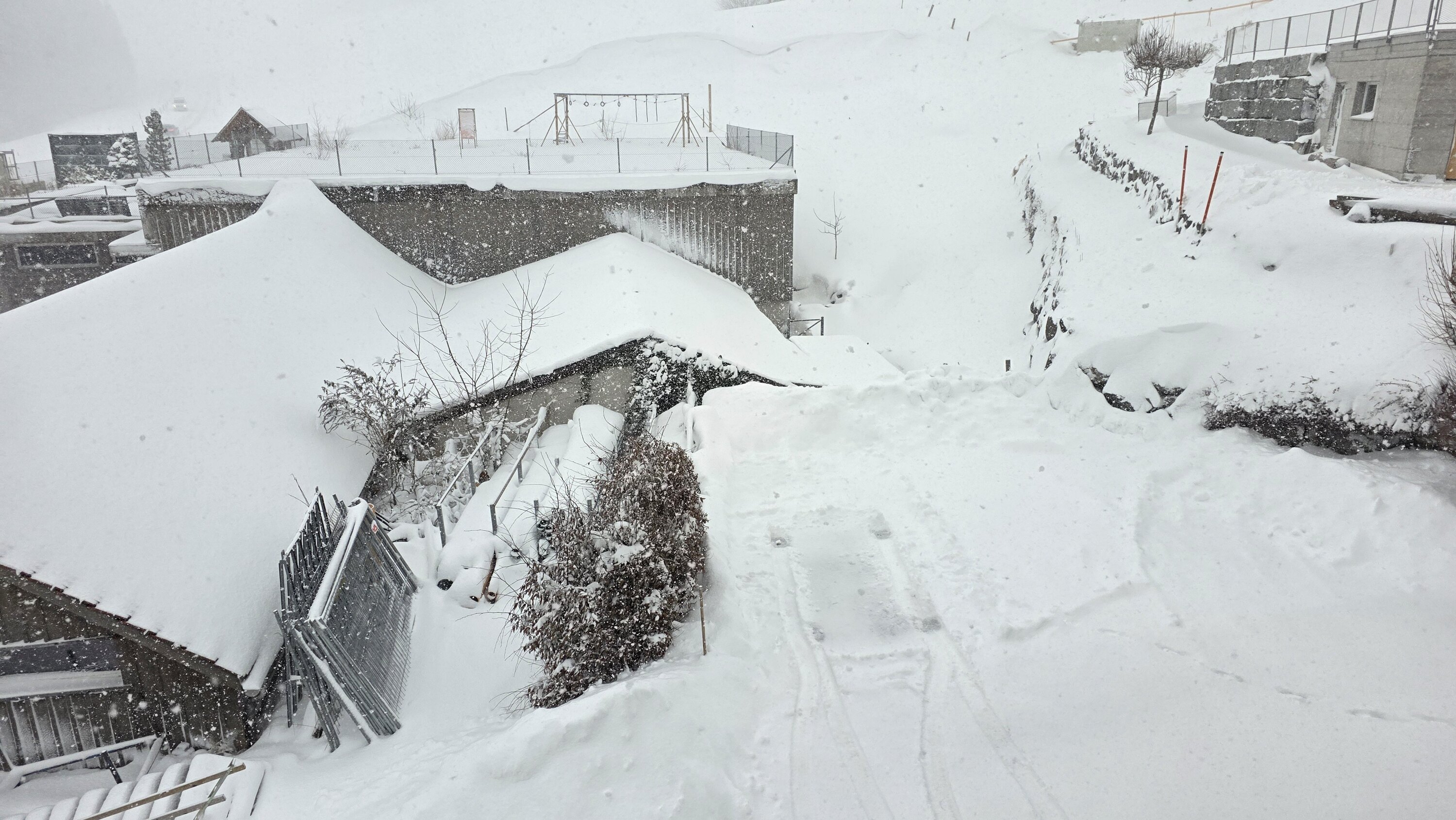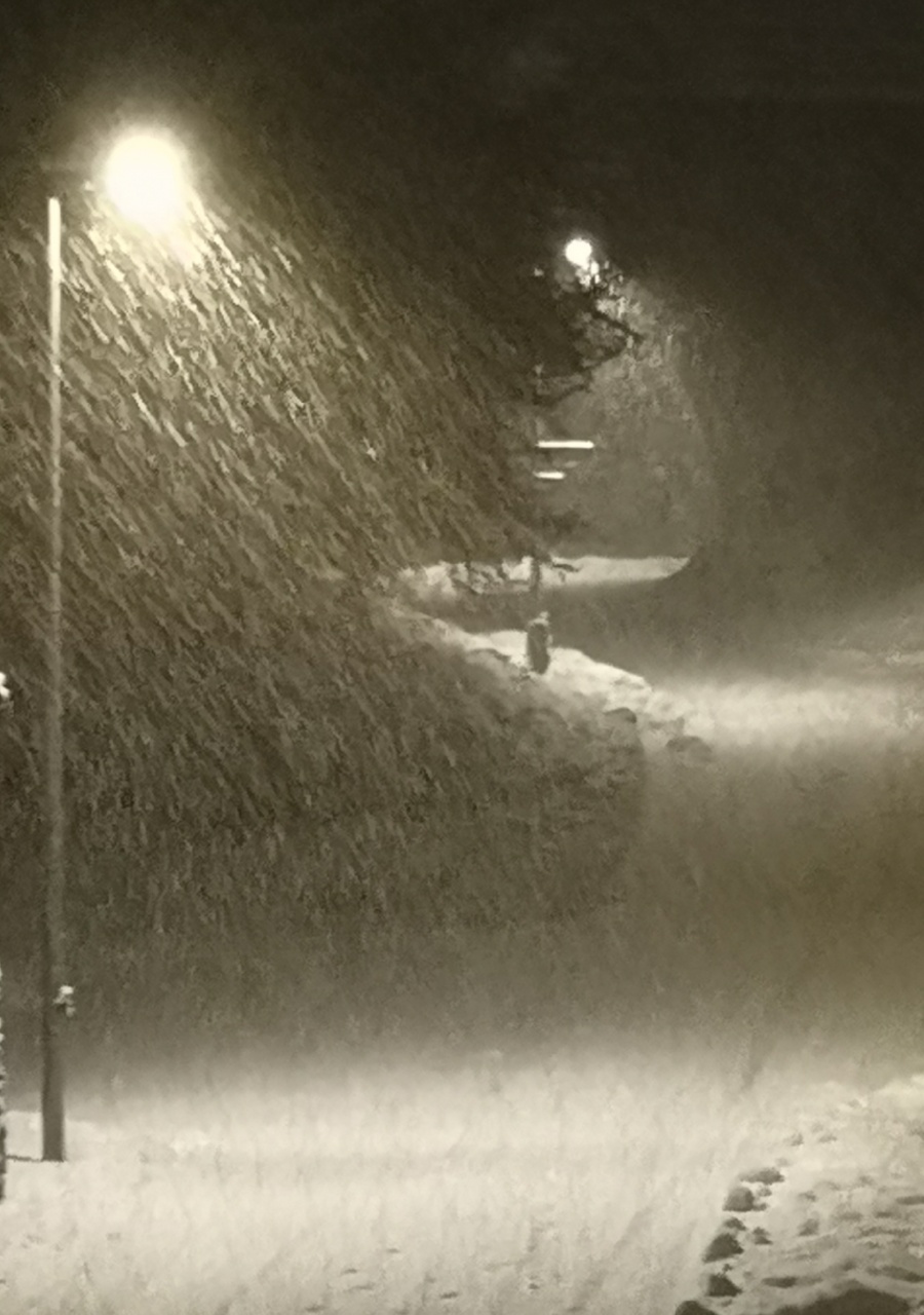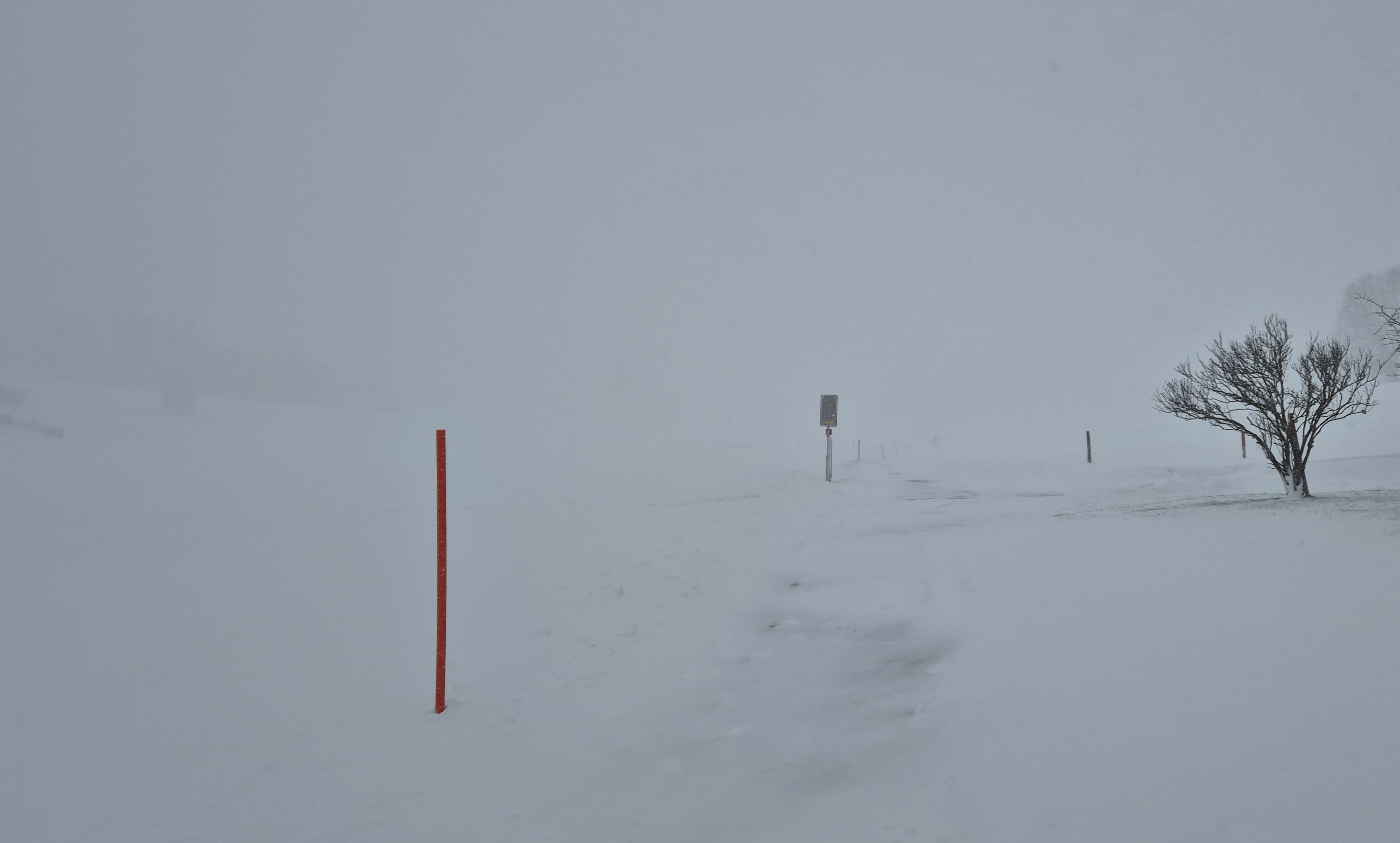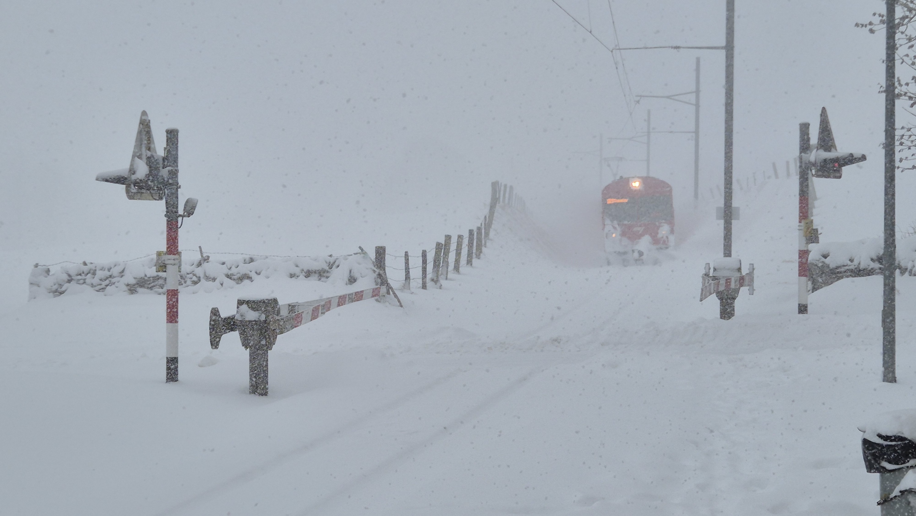 Es schneite durchgehend mehr oder weniger stark, zeitweise herrschten durch die schauerartige Verstärkung des Niederschlags und den starken Wind Whiteout-ähnliche Bedingungen: