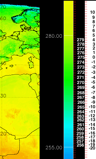 sollte die Temperatur ohne Wolken um 18:45 UTC anzeigen.
