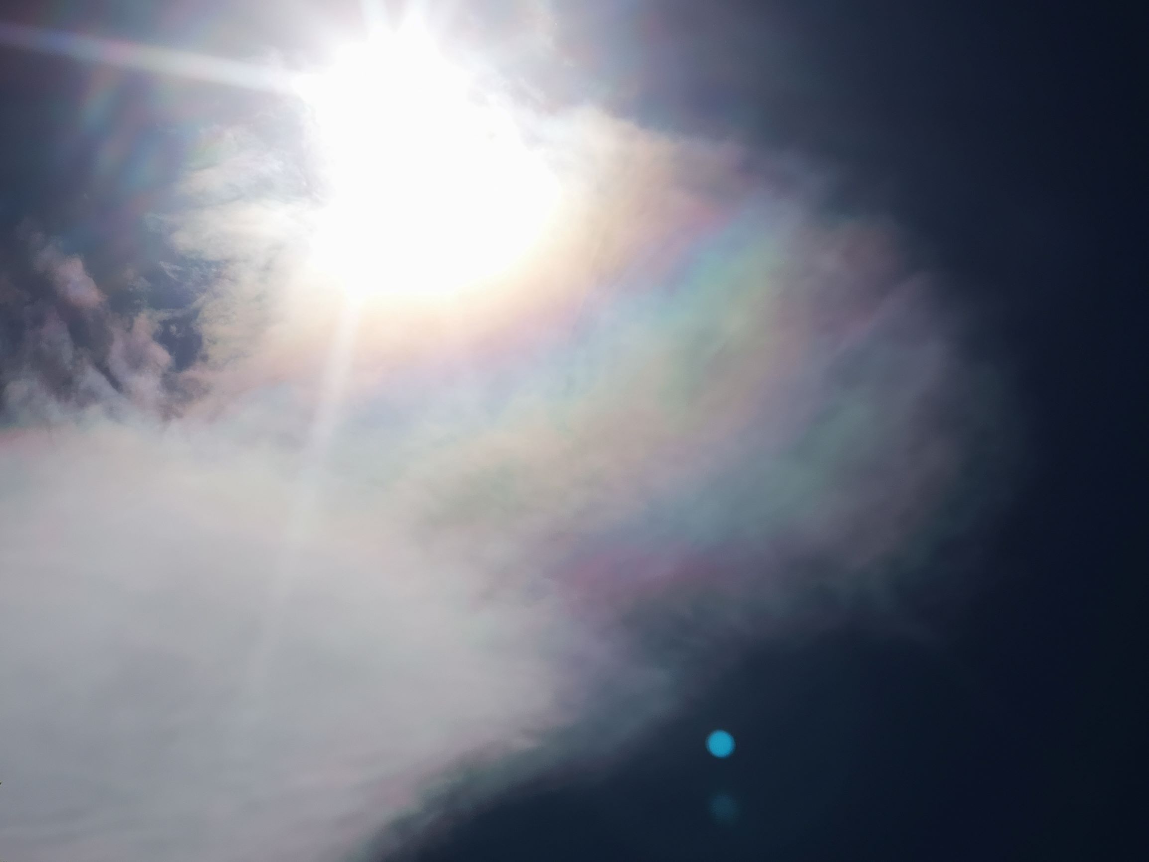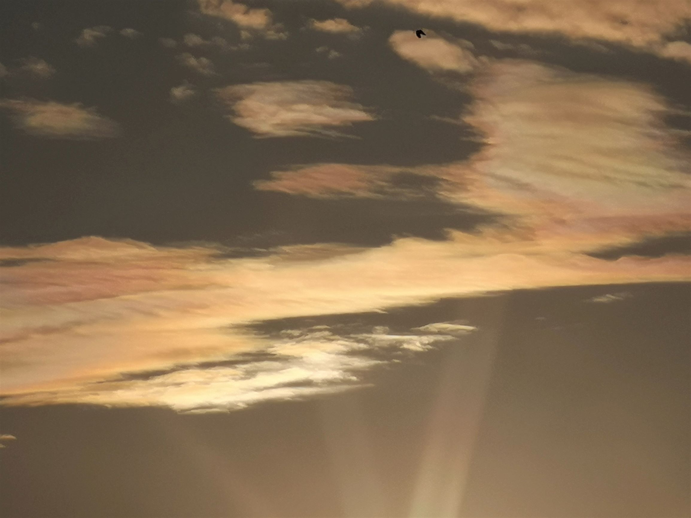 Wenn man genau hinschaut im Zeitraffer, kann man sie jeweils kurz erkennen in der Nähe der Sonne. Interessant fand ich auch die 2 unterschiedlichen Wolkenschichten und Zugrichtungen. Für die Perlmuttfarben war die obere Schicht verantwortlich:
