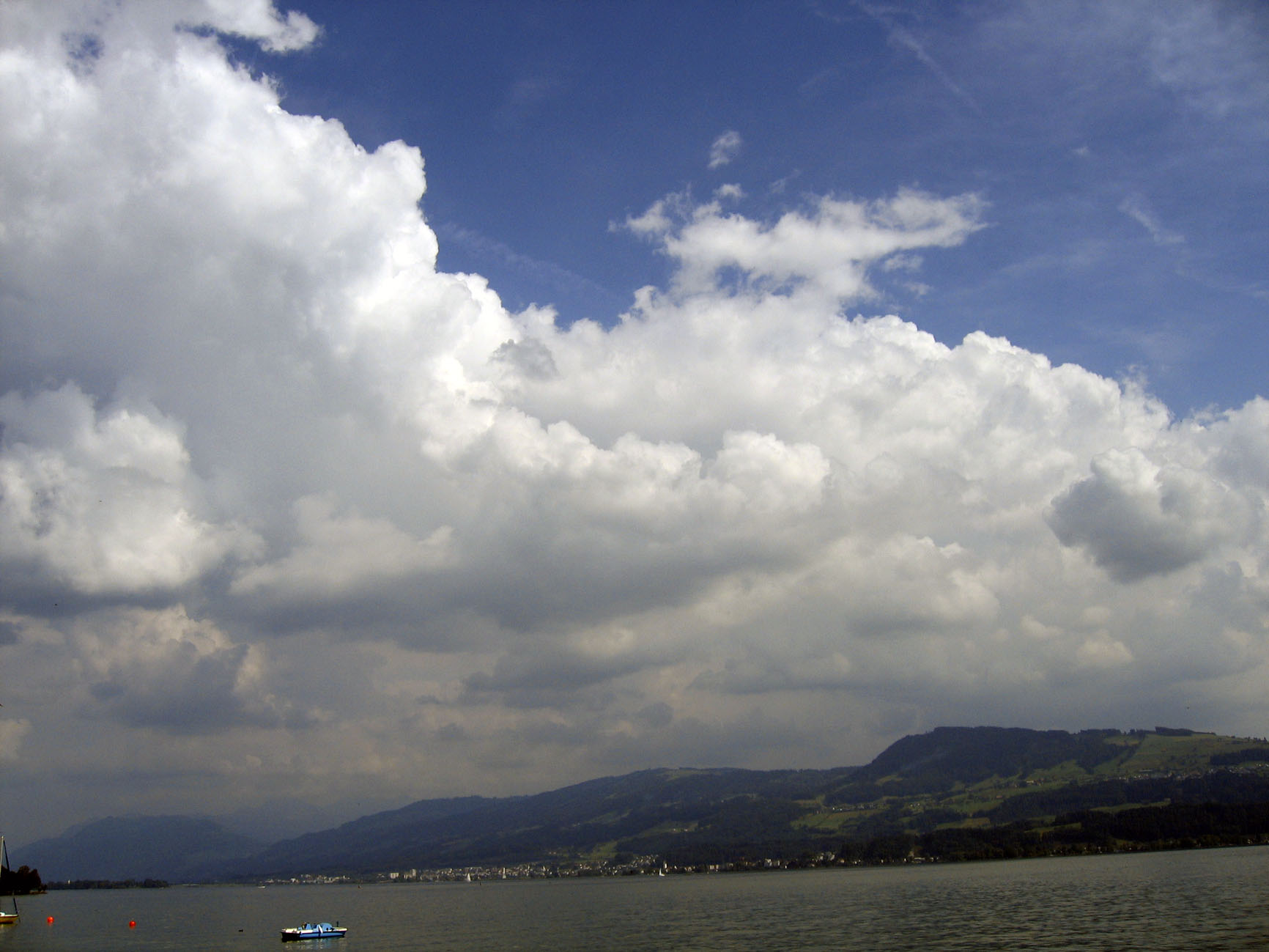 Es kommt noch, es kommt noch. Zum ersten Mal konnte sich vorhin ein Cu con zu einem (kleinen) Cb cal (?) entwickeln. Der Queller müsste irgendwo über den Schwyzer Voralpen hochgeschossen sein:
