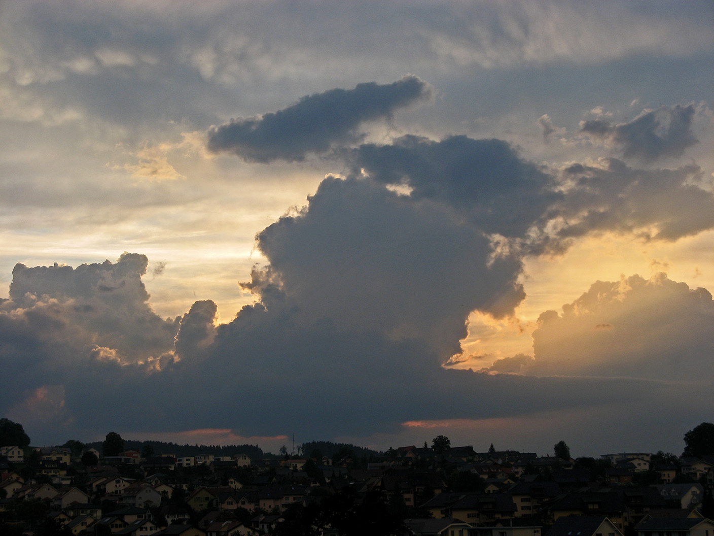 Zum war ein Kollege mit dem Auto dort, denn eigentlich wollte ich noch mit den Skates nach Hause rollen. Auf der Autofahrt nach Wilen konnten wir die Zelle gut beobachten. Die Blitzrate war gering, dafür waren es fast alles CGs und laute Knaller dazu :-D. Zuhause angekommen, haben wir die Zelle schon wieder eingeholt und es begann kurz stark zu regnen (Regensumme gesamt: 1mm).