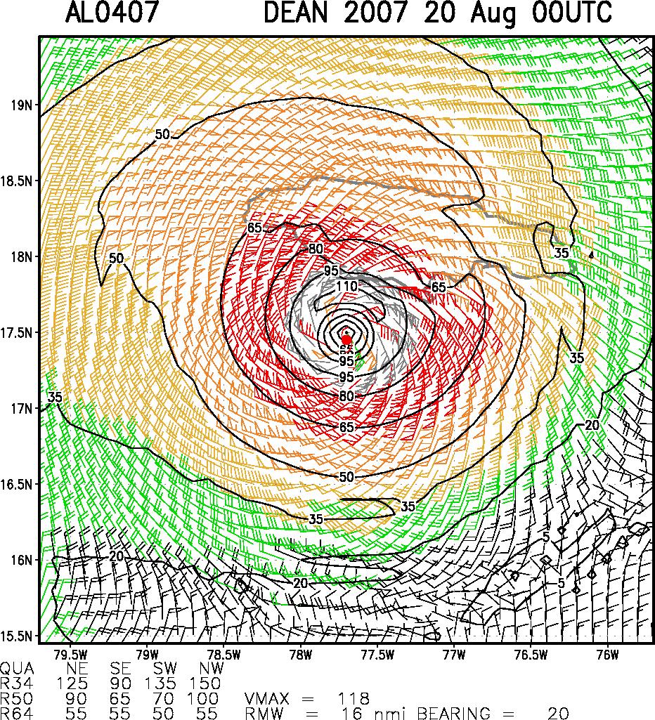 Das Windfeld von DEAN um 0000 UTC 20.August