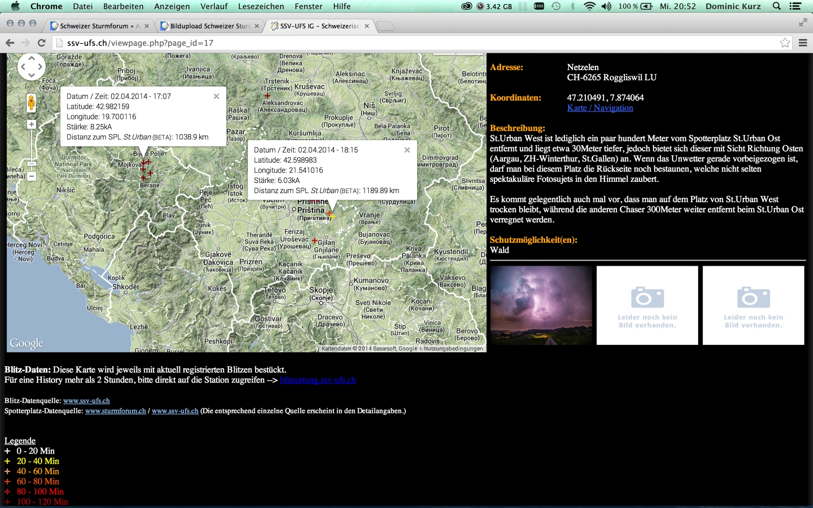 Das heisst, wenn ein Blitz z.B. in Süditalien niedergegangen ist, erhält man mit Klick auf den Blitz nebst den Blitzinfos auch den am vom Blitz/Gewitter nächsten