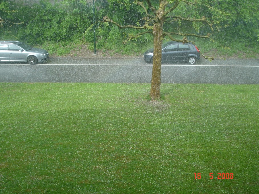 Auf diesem Bild ist die höchste Hagelintensität erreicht, kurz danach diesem Bild vermochten die Abläufe, das Wasser nicht mehr zu schlucken: