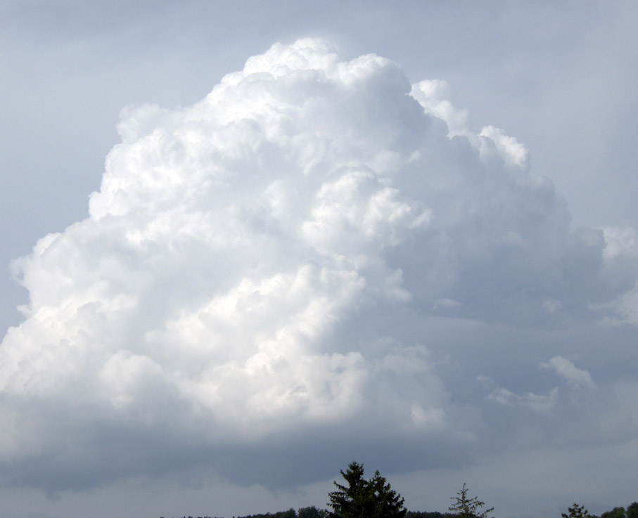 Nett quellender Cumulus mediocris, ev. bereits im Übergangsstadium zu Cumulus congestus über dem Zürcher Oberland. Die Verfransungen im oberen Bereich deuten aber so wie ich das beurteilen kann darauf hin, dass er etwas Mühe hat.