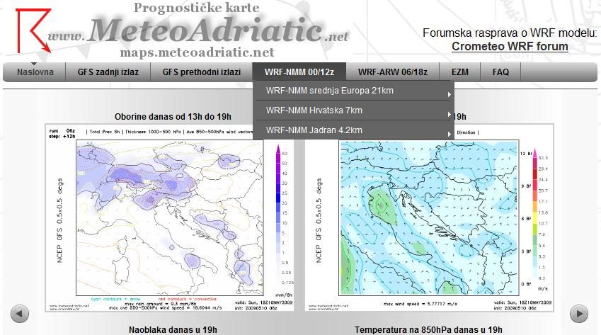 Und hier das WRF NMM Modell von MeteoAdriatic plus die GFS NCEP Modelle ... ;)