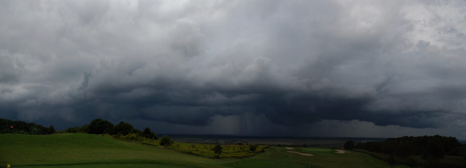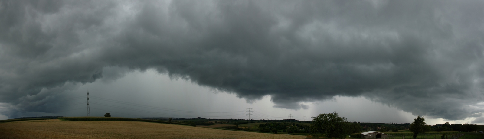 Schon bald entwickelte sich daraus eine Gewitterlinie, kurzzeitig rotierte die Basis in der rechten Bildhälfte deutlich erkennbar... 14.45 Uhr: