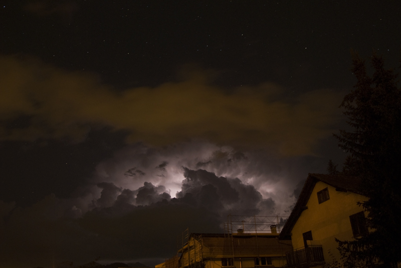 Beeindruckendes (weil sehr helles) Wetterleuchten hier in Winterthur in Richtung Süden zu sehen. Bis zum Uri Rotstock sind es gut und gerne 90-100 km Luftlinie.....: