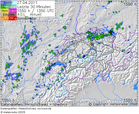 Jedenfalls hier noch ein Bericht aus dem "core". Nach Mittag wurde es dunkel, 2-3 Donner zu hören vom Weinland her. Kind eingepackt nach Konsultation Radar, nach Hause gefahren. Dann wurden zuerst sehr diskret, nachher nachhaltiger die Schleusen geöffnet. Schöner Regen, eigentlich eher Landregenstil. Sind wohl so 5-8 mm deponiert worden. Herrliche saubere und frische Luft jetzt endlich wieder mal. Jetzt klart es langsam auf.