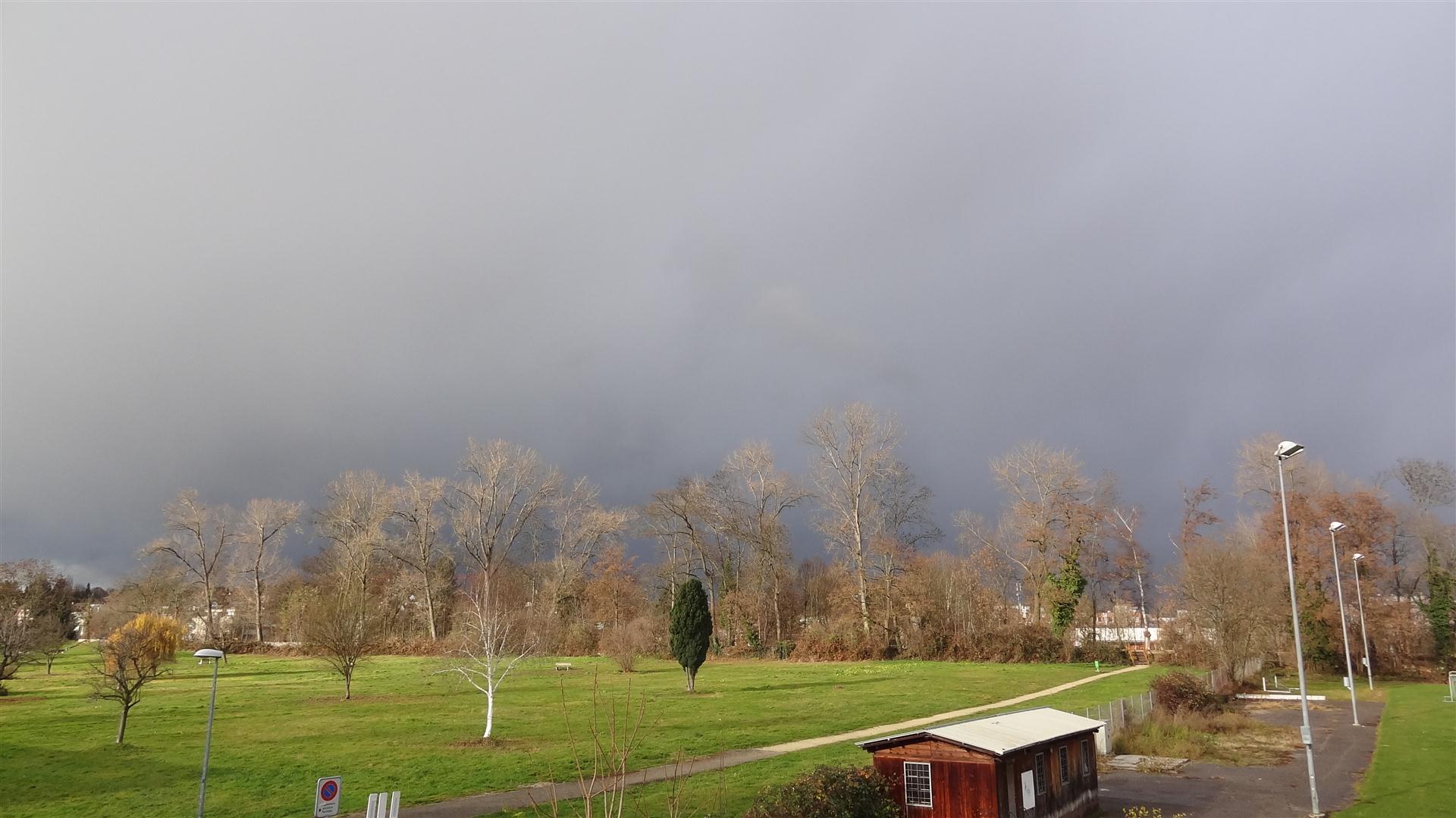 Frontdurchgang auf der Ehingen Alb. Bevor der Regen kam waren einzelne Matsch-Hagelkörner dabei.