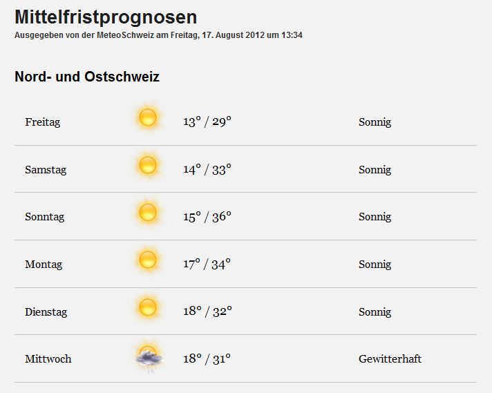Mittelfristprognose der MeteoSchweiz vom 17.08.: