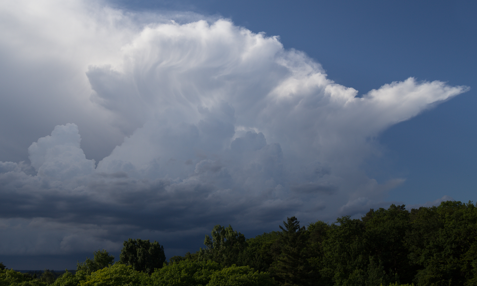 Outflow einer der sterbenden Schwarzwaldzellen ist vor wenigen Minuten in Döttingen vorbeigerauscht und zieht nun Richtung Mittelland wo sie auf den Outflow der Hohgantzelle treffen wird.