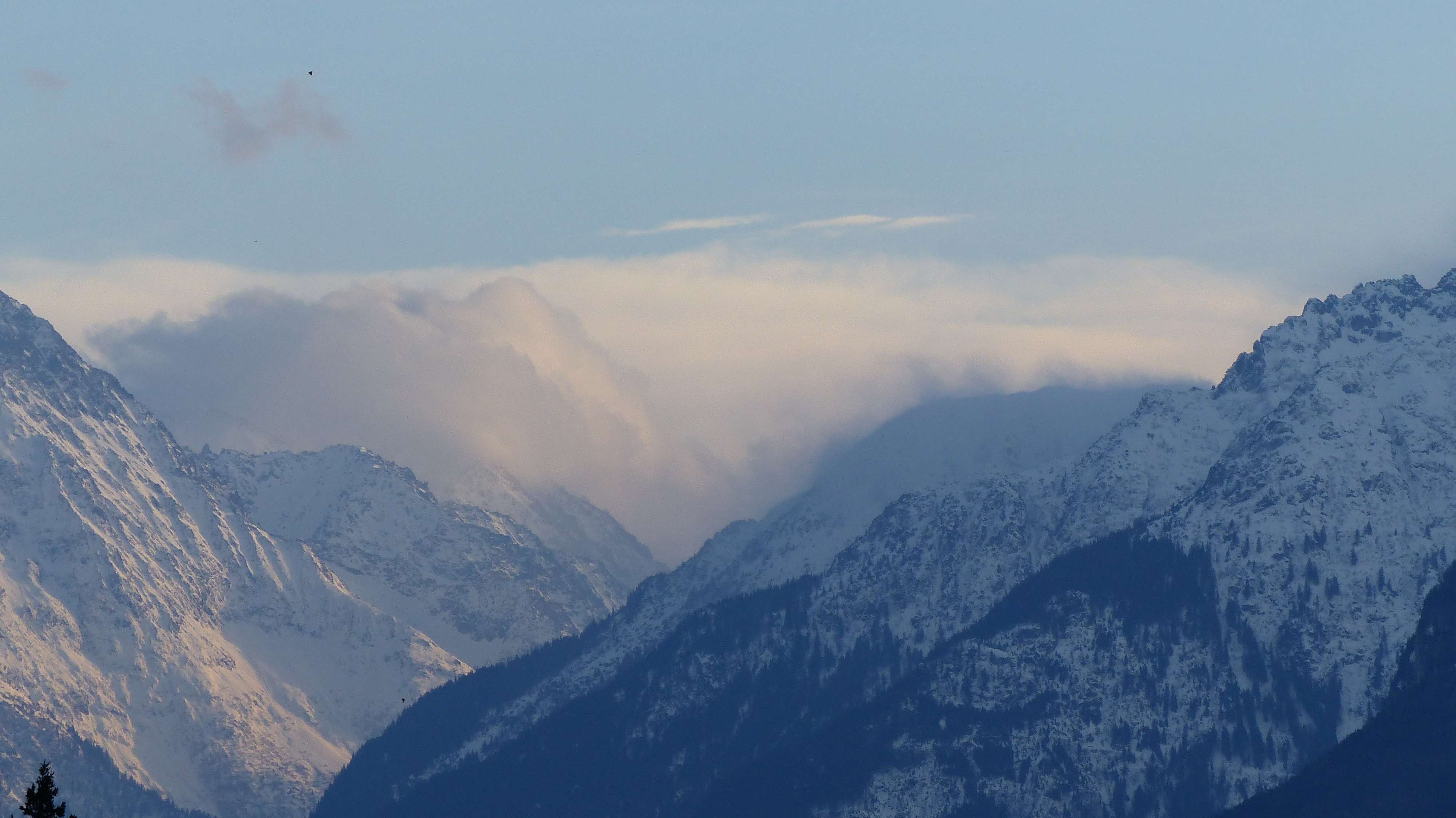 Hier in Schwyz ist der Föhn jetzt da, in den typischen Wellen. Allerdings noch nicht kräftig.