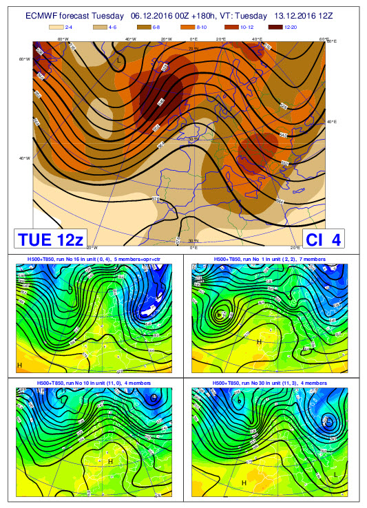 (EZ 500 hPa Geopotential ENS-Prognosen für den kommenden Dienstag)