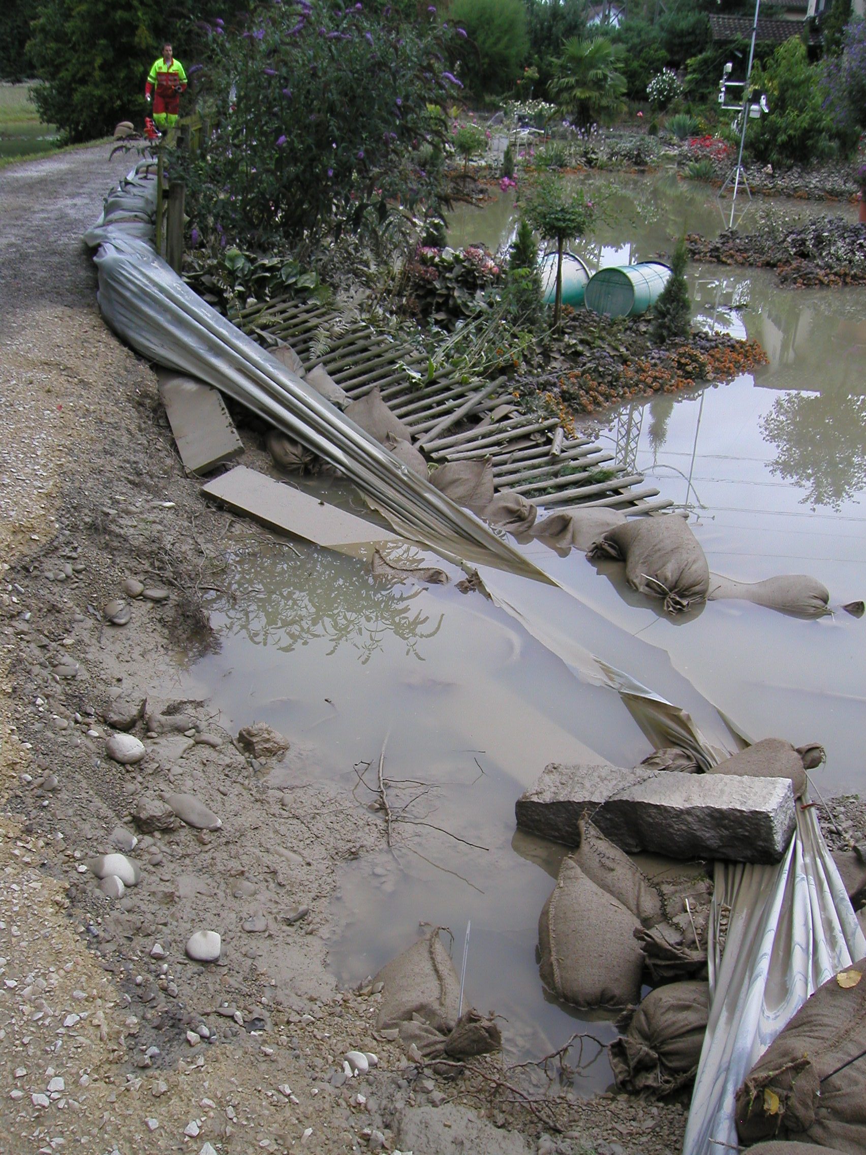Als ich am 8. in der Matte unterhalb der Schwellen am Sandsäcke schleppen war kamen ganze Bäume angeschwommen.