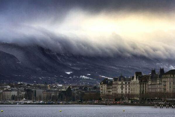 Bei dieser optischen Täuschung könnte man meinen, ein Tsunami verschlinge jeden Moment die Stadt Genf. In Tat und Wahrheit ist es ein Bild der Joran-Wolkenwalze (ob das Bild allerdings leicht manipuliert wurde, ist mir nicht bekannt).